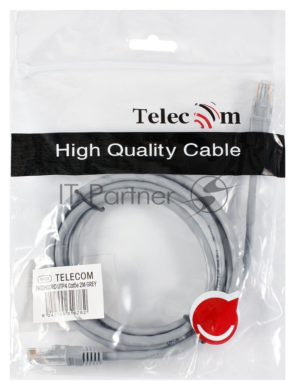 Патчкорд 2м «Telecom» UTP кат.5е RJ45, литой, серый, NA102—2M