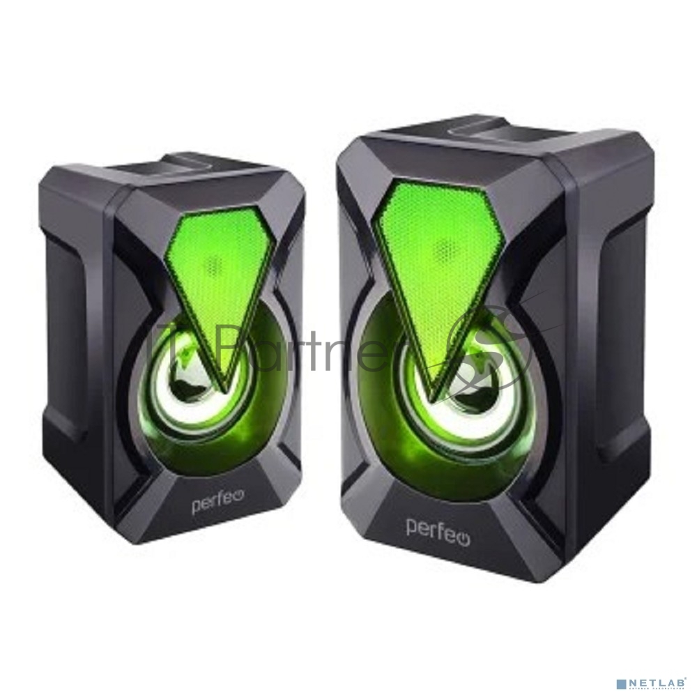 Perfeo колонки «FLAMES», 2.0, мощность 2х3 Вт, USB, чёрн, Game Design, LED подсветка 7 цв
