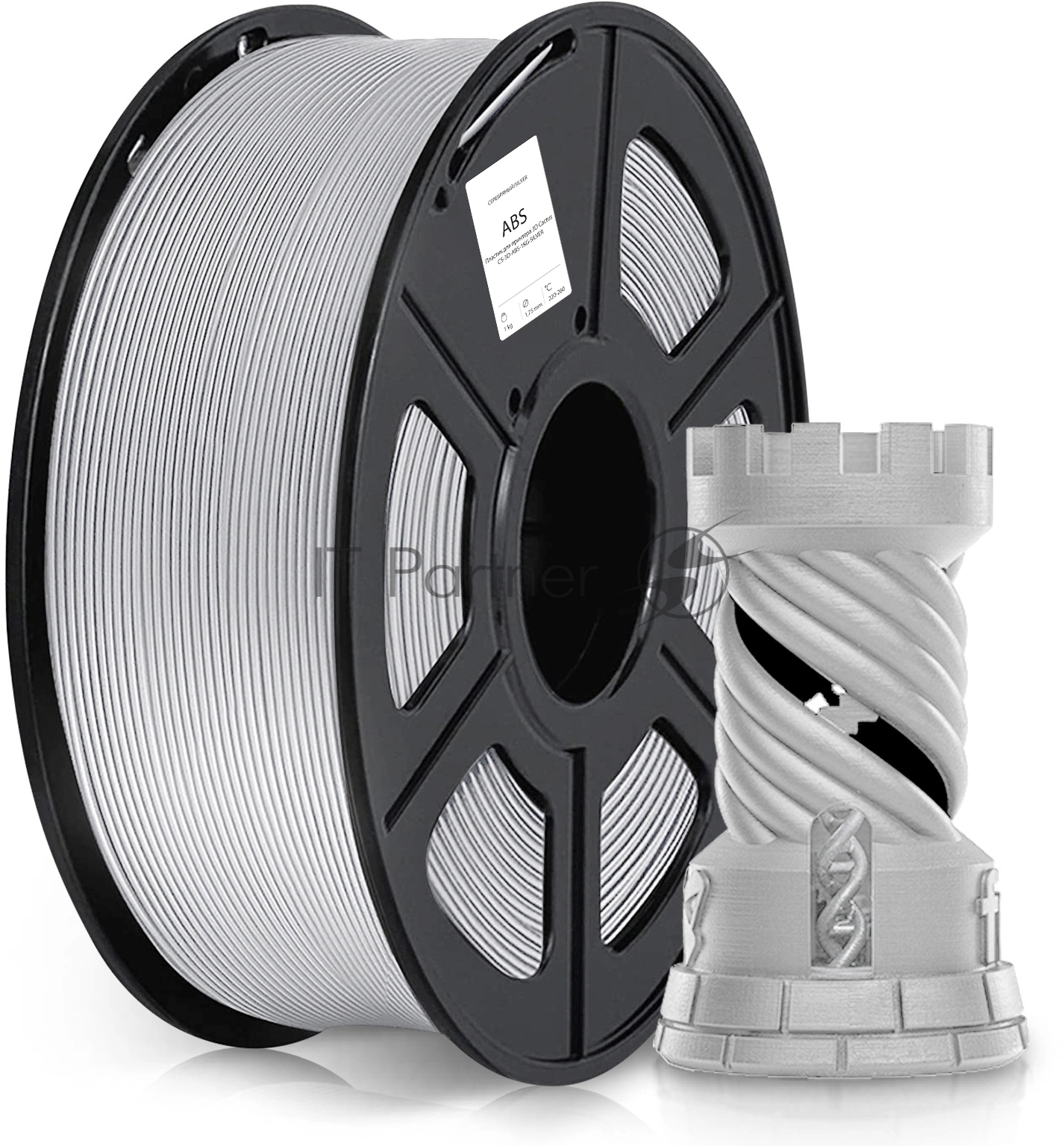 Пластик для принтера 3D Cactus CS-3D-ABS-1KG-SILVER ABS d1.75мм 1кг L386м 1цв.