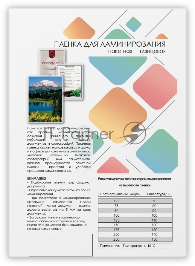 Пленка для ламинирования 216х303 (100 мик) 100 шт. Гелеос (LPA4-100)