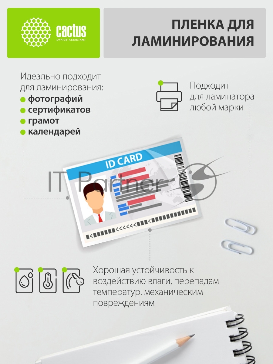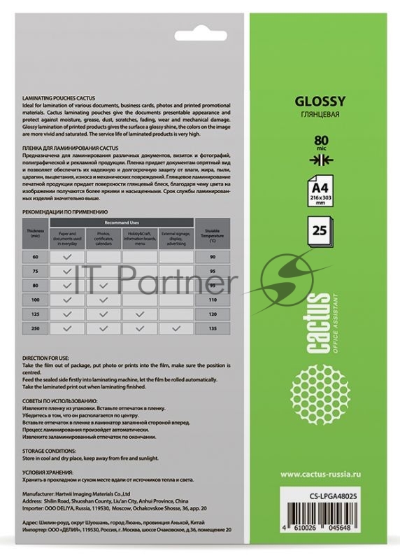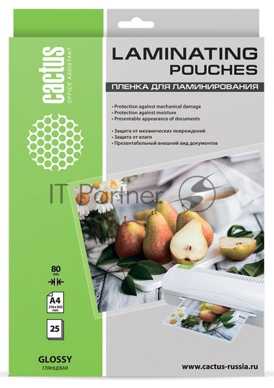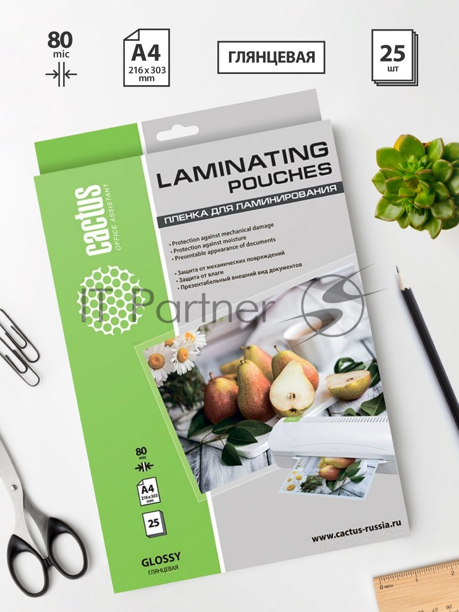 Пленка для ламинирования Cactus 80мкм A4 (25шт) глянцевая 216×303мм CS-LPGA48025