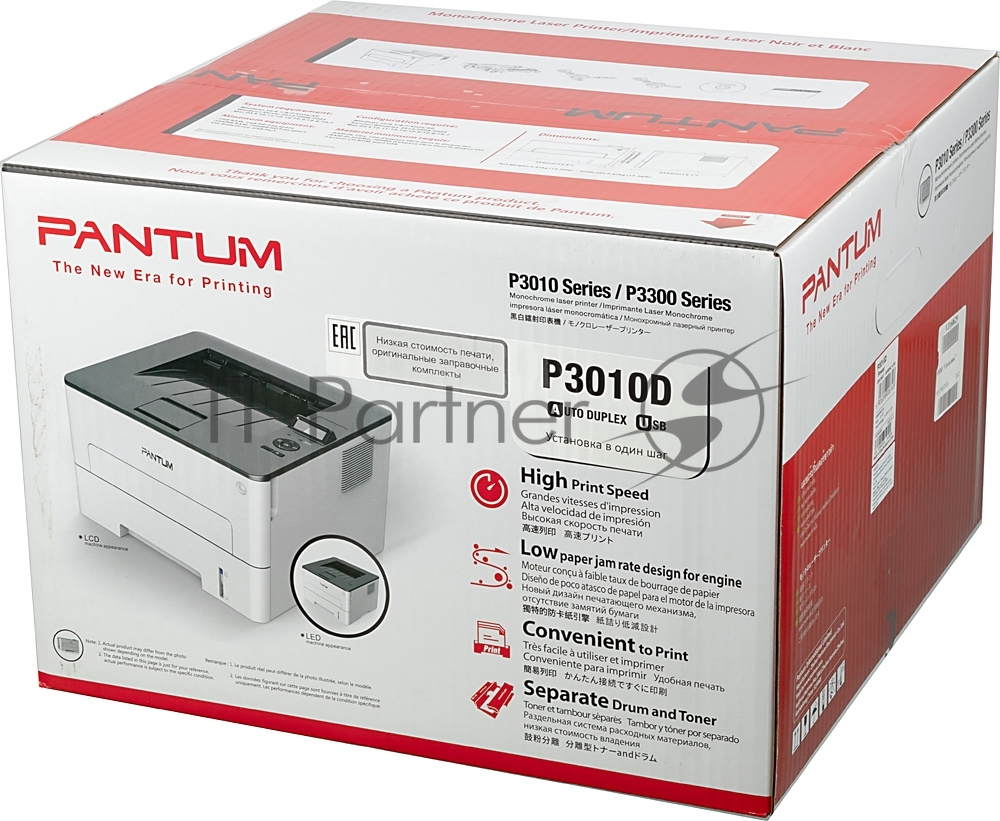 Принтер лазерный Pantum P3010D, A4, ч/б, печ. до 30 стр/мин, 1200 х 1200dpi, USB
