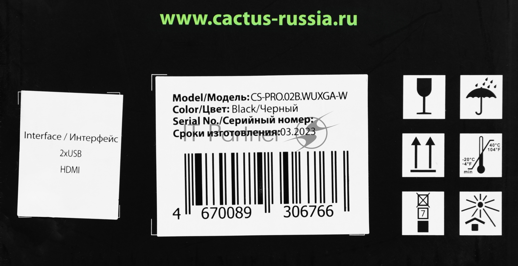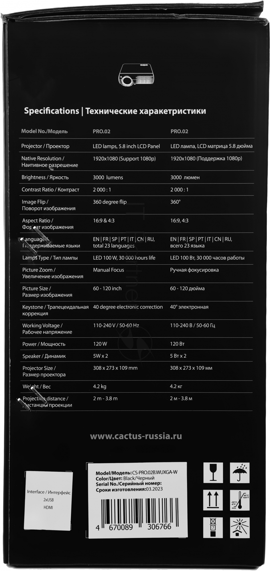 Проектор Cactus CS-PRO.02B.WUXGA-W LCD 3000Lm (1920×1080) 2000:1 ресурс лампы:30000часов 2xUSB typeA 1xHDMI 4.2кг
