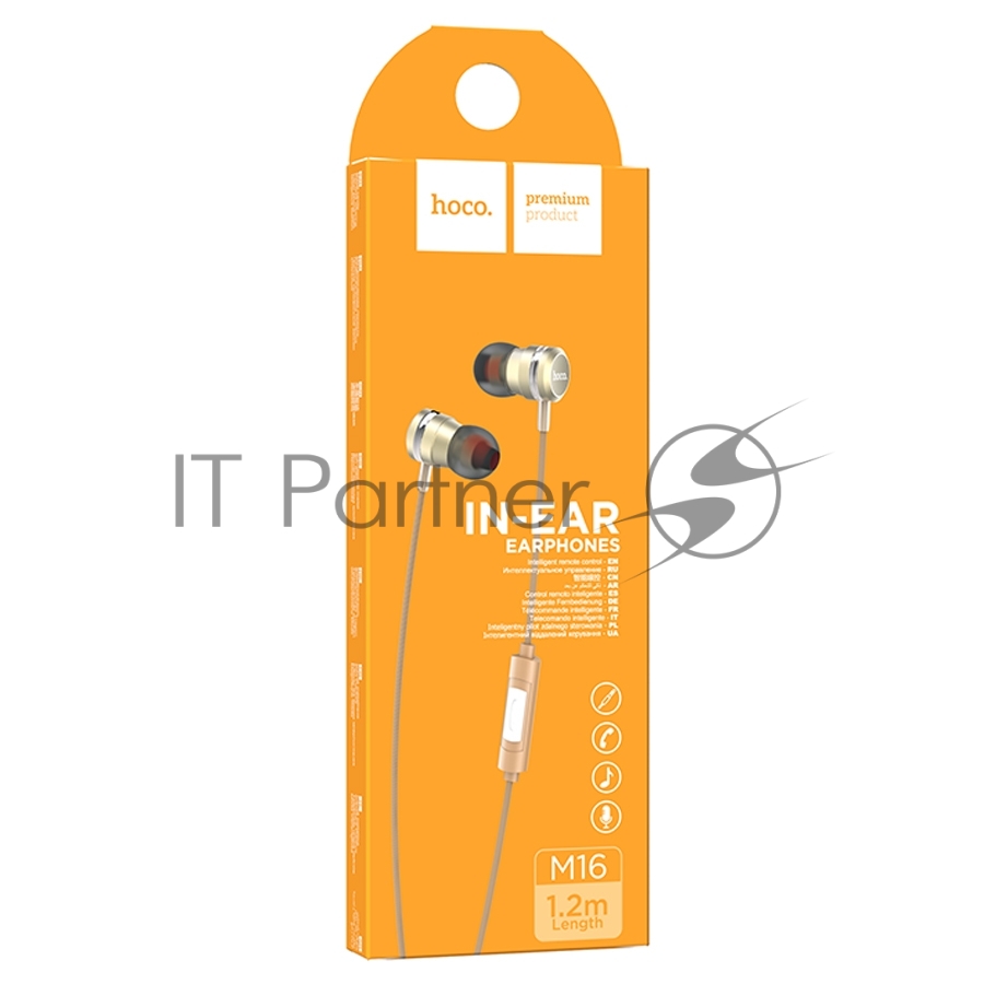 Проводные наушники-вставки с микрофоном Hoco M16 золотой
