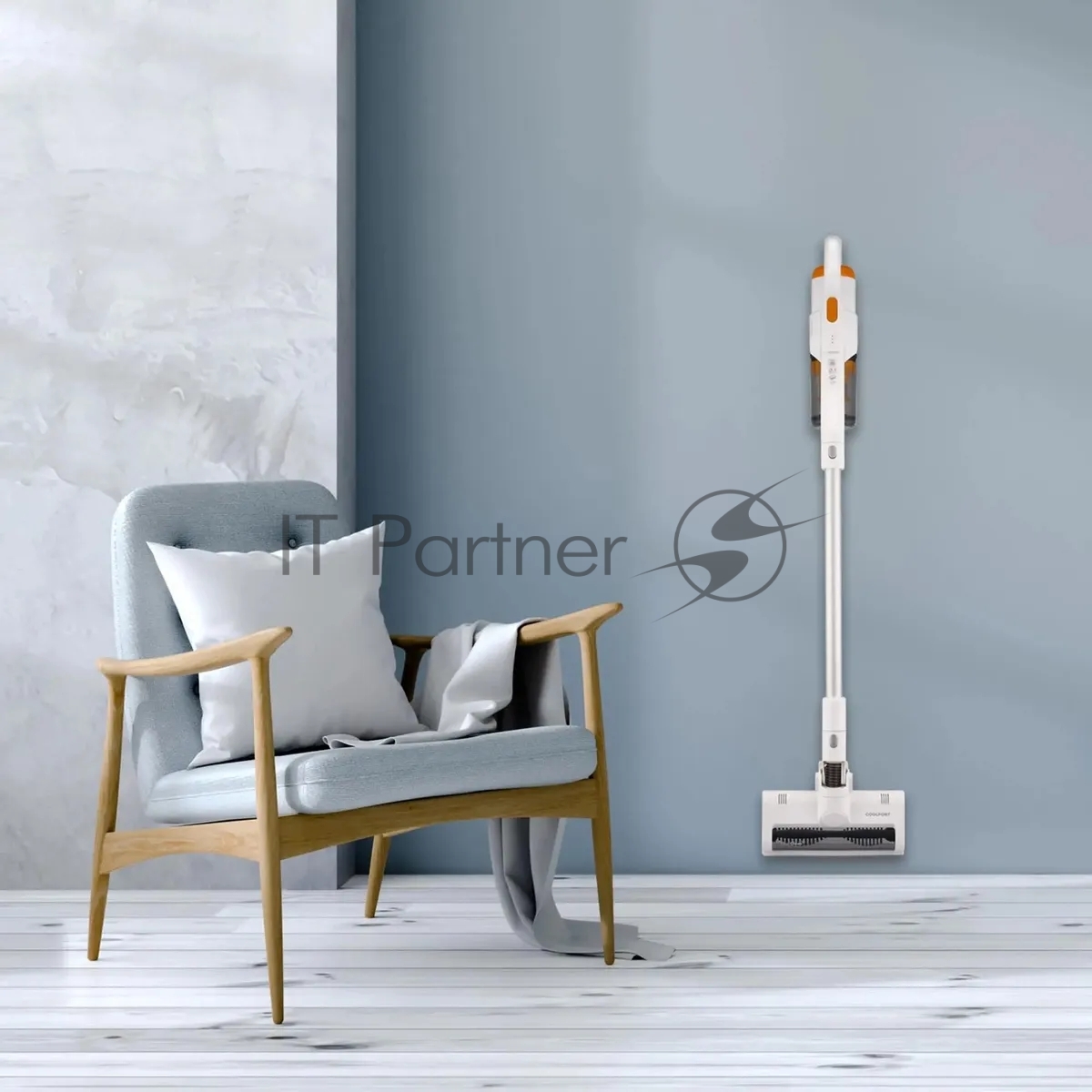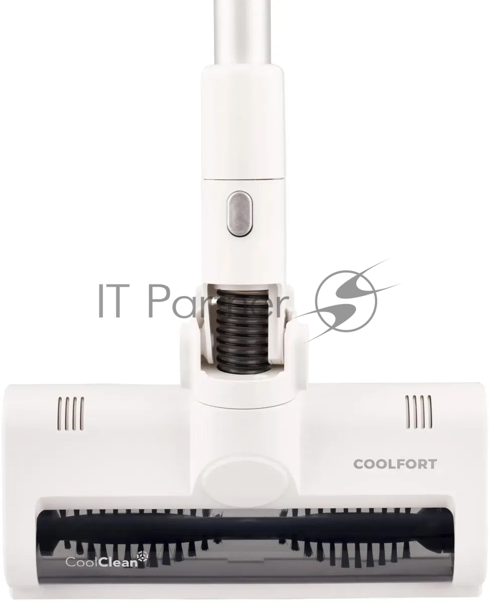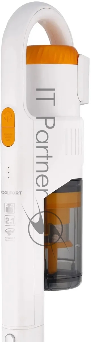 Пылесос вертикальный Coolfort CF-3001 белый, питание от аккумулятора, 150 Вт, уборка сухая, пылесборник 0.5 л, работа от АКБ max 30 мин.