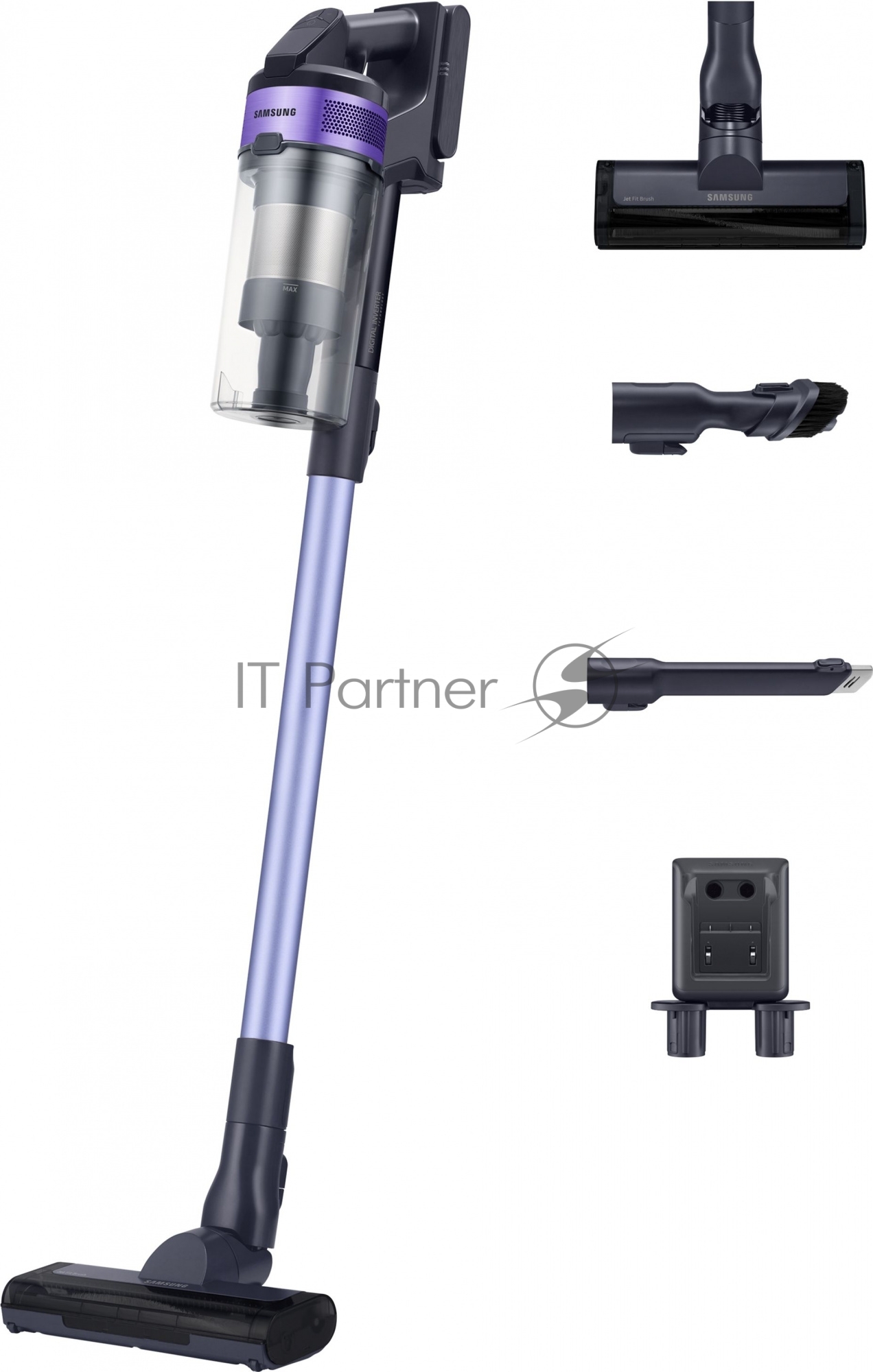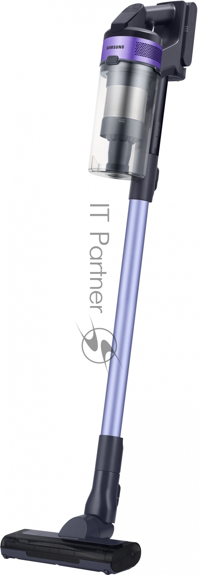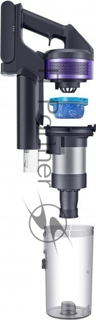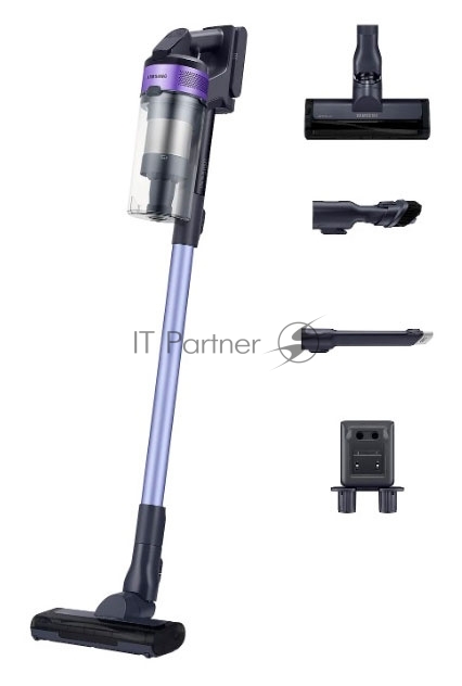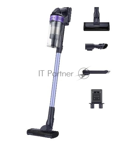 Пылесос вертикальный Samsung VS15A6031R4/EV фиолетовый/чёрный, питание от аккумулятора, 150 Вт, уборка сухая, пылесборник 0.8 л, работа от АКБ max 40 мин.