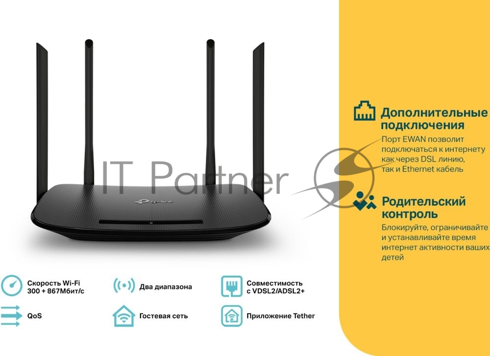Роутер беспроводной TP-Link Archer VR300 AC1200 10/100BASE-TX/ADSL черный