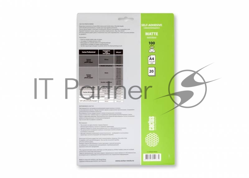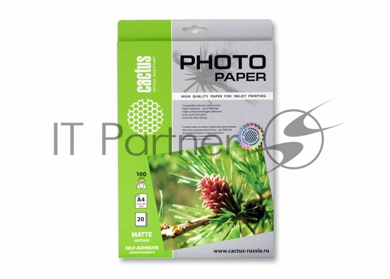 Самоклеящаяся бумага фотобумага Cactus CS-MSA410020 матовая А4 100 г/м2 20 листов