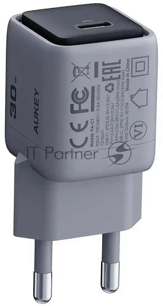 Сетевое зарядное устройство Aukey Comet Mini 30W серый