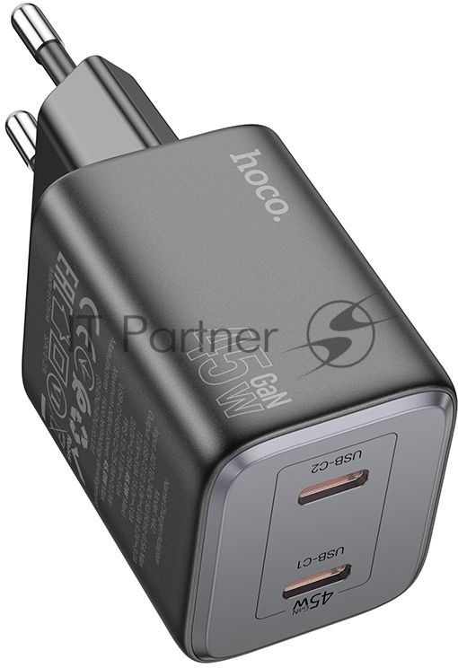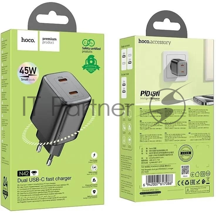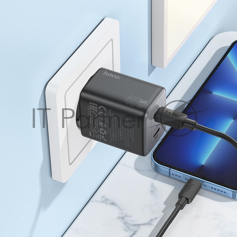 Сетевое зарядное устройство Hoco N42 Elogiado 45W 3A+2.25A (PD+QC+AFC) 2xUSB type-C универсальное черный