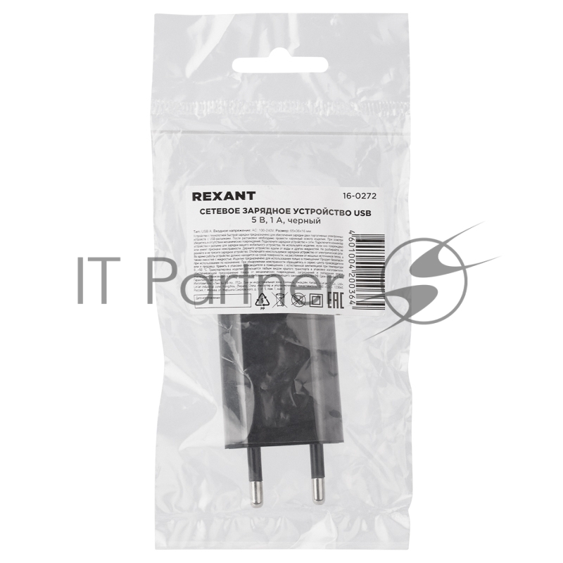 Сетевое зарядное устройство Rexant USB, 5V, 1 A, черное