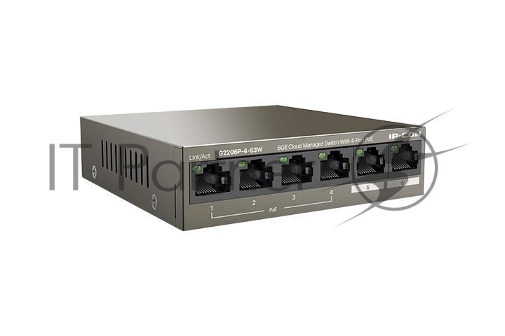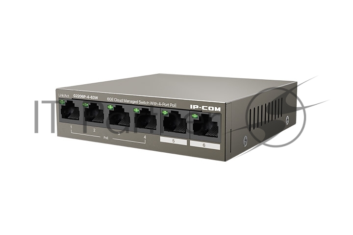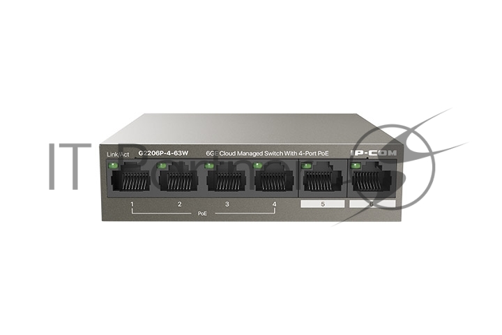 Сетевой коммутатор IP-COM G2206P-4-63W 4x10Base-T / 100Base-TX / 1000Base-T 2x1000Base-T PoE порты 4 Количество портов PoE+ 4 G2206P-4-63W