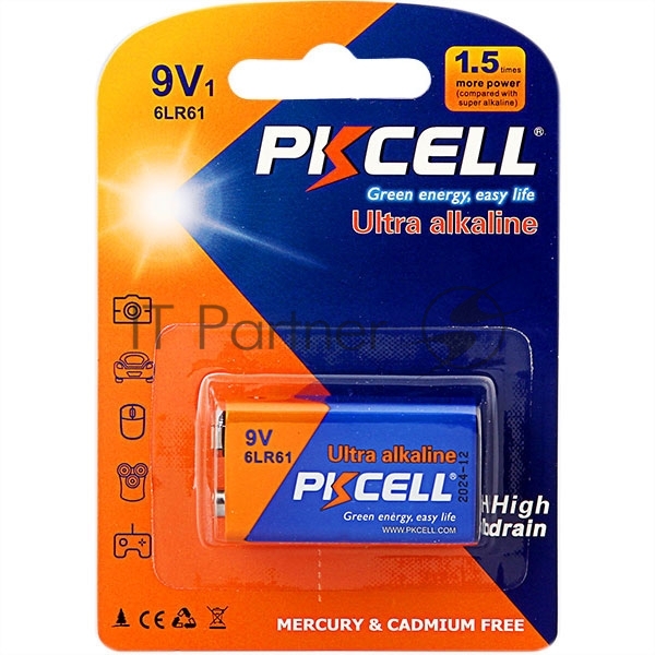 Щелочной/алкалиновый элемент питания PKCELL 6LR61-1B тип — 9V(Крона) 1 шт в блистере