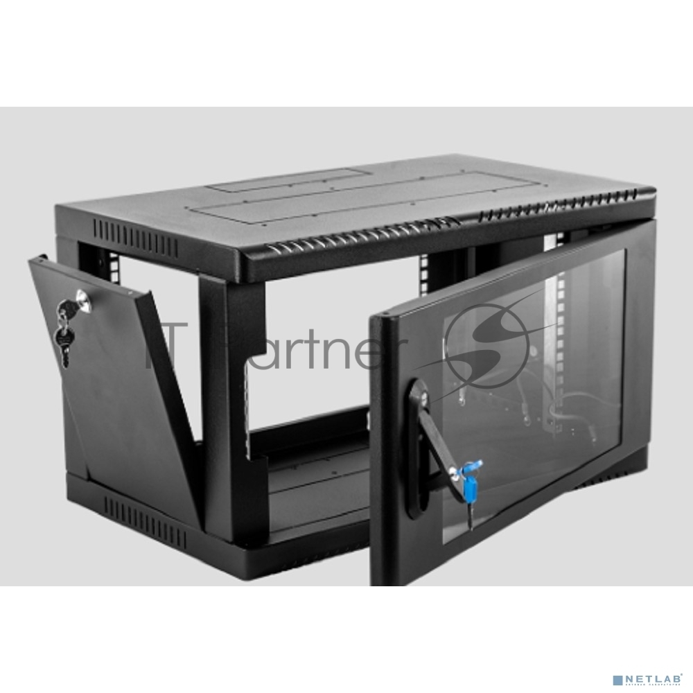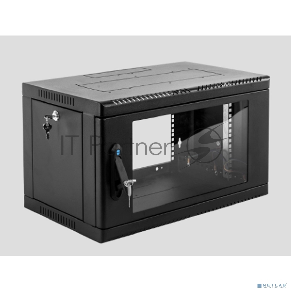 Шкаф коммутационный ЦМО (ШРН-6.500-9005) настенный 6U 600×500мм пер.дв.стекл 200кг черный 470мм 180град.