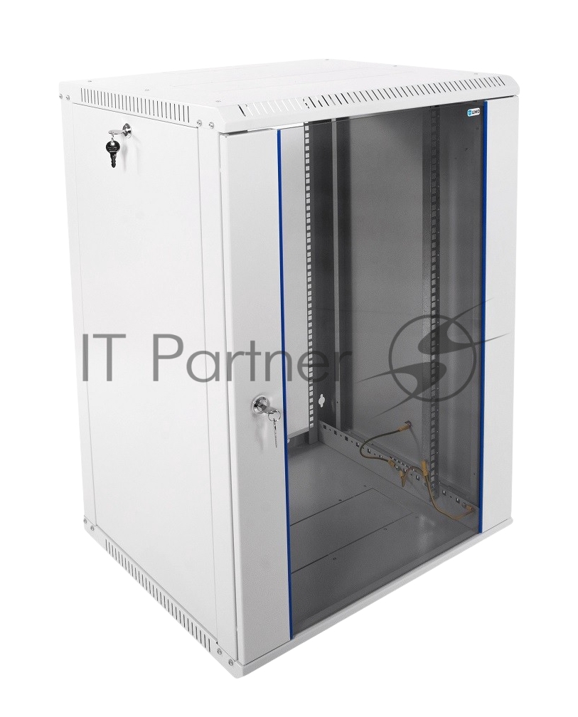 Шкаф настенный ЦМО ШРН-Э-18.500 18U 600×520мм пер.дв.стекл несъемные бок.пан. серый
