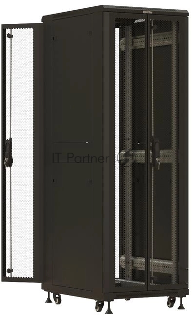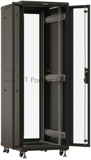 Шкаф серверный Hyperline TTBR-3268-DD-RAL9004 напольный 32U 600×800мм пер.дв.перфор. задн.дв.перфор. 2 бок.пан. 1000кг черный 710мм 77.7кг 1610мм IP20 сталь