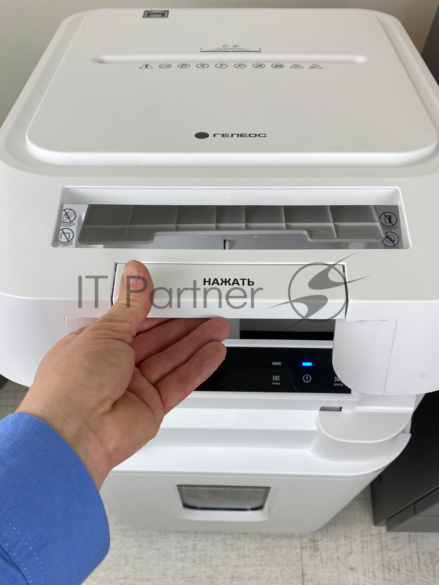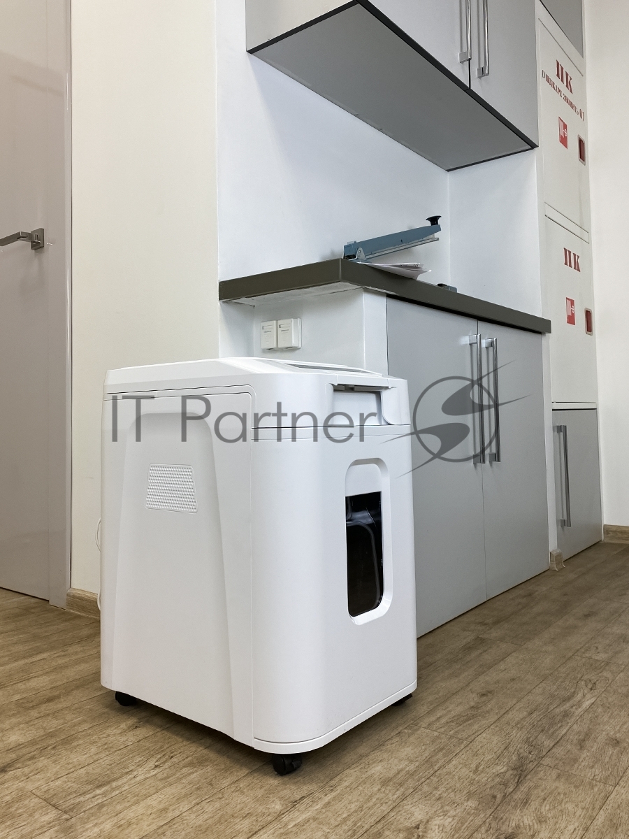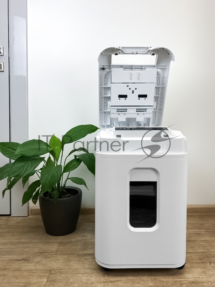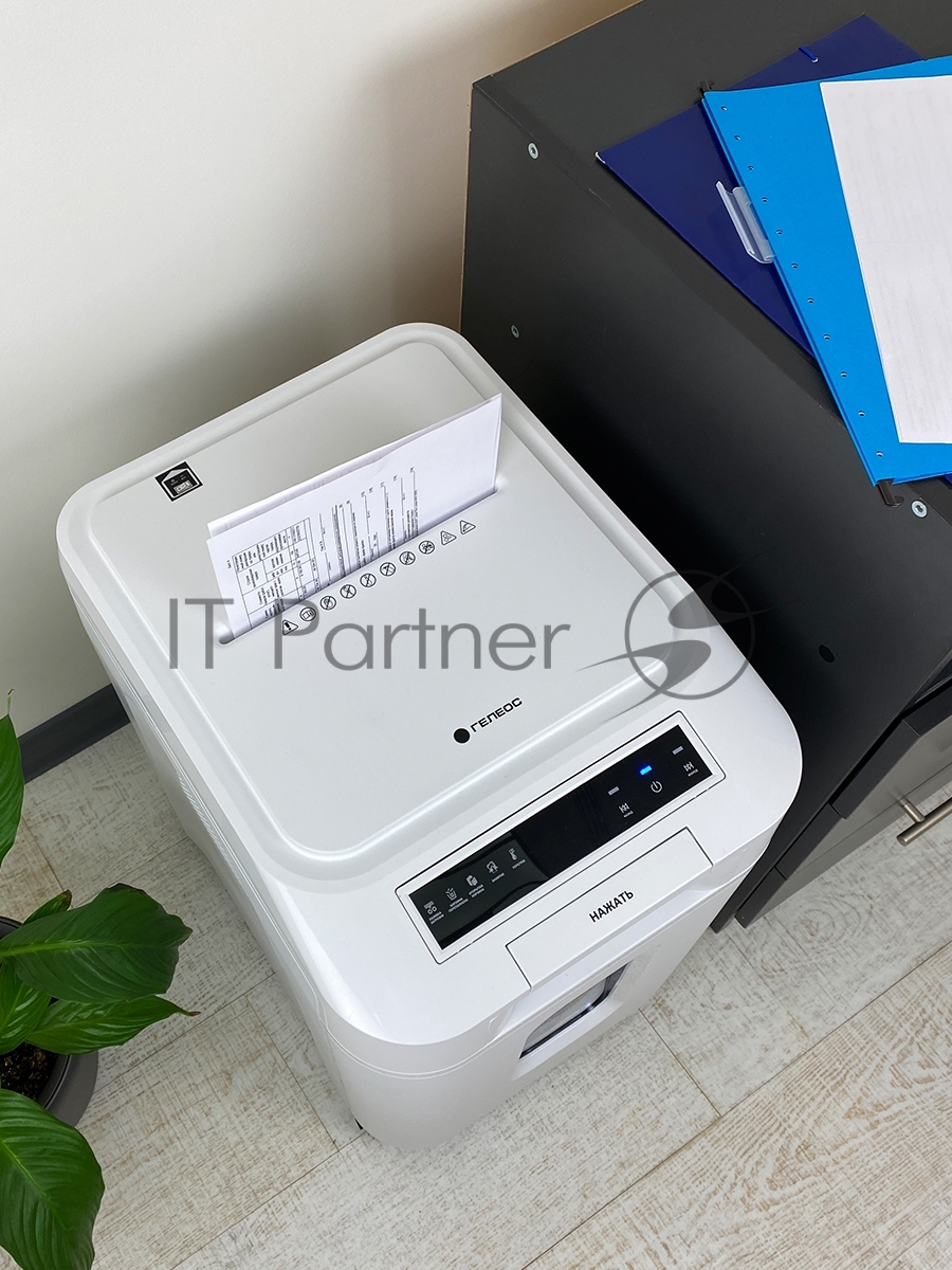 Шредер Heleos АП37-5 белый/белый с автоподачей (секр.P-5) фрагменты 220лист. 37лтр. скрепки скобы пл.карты