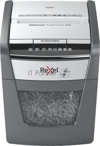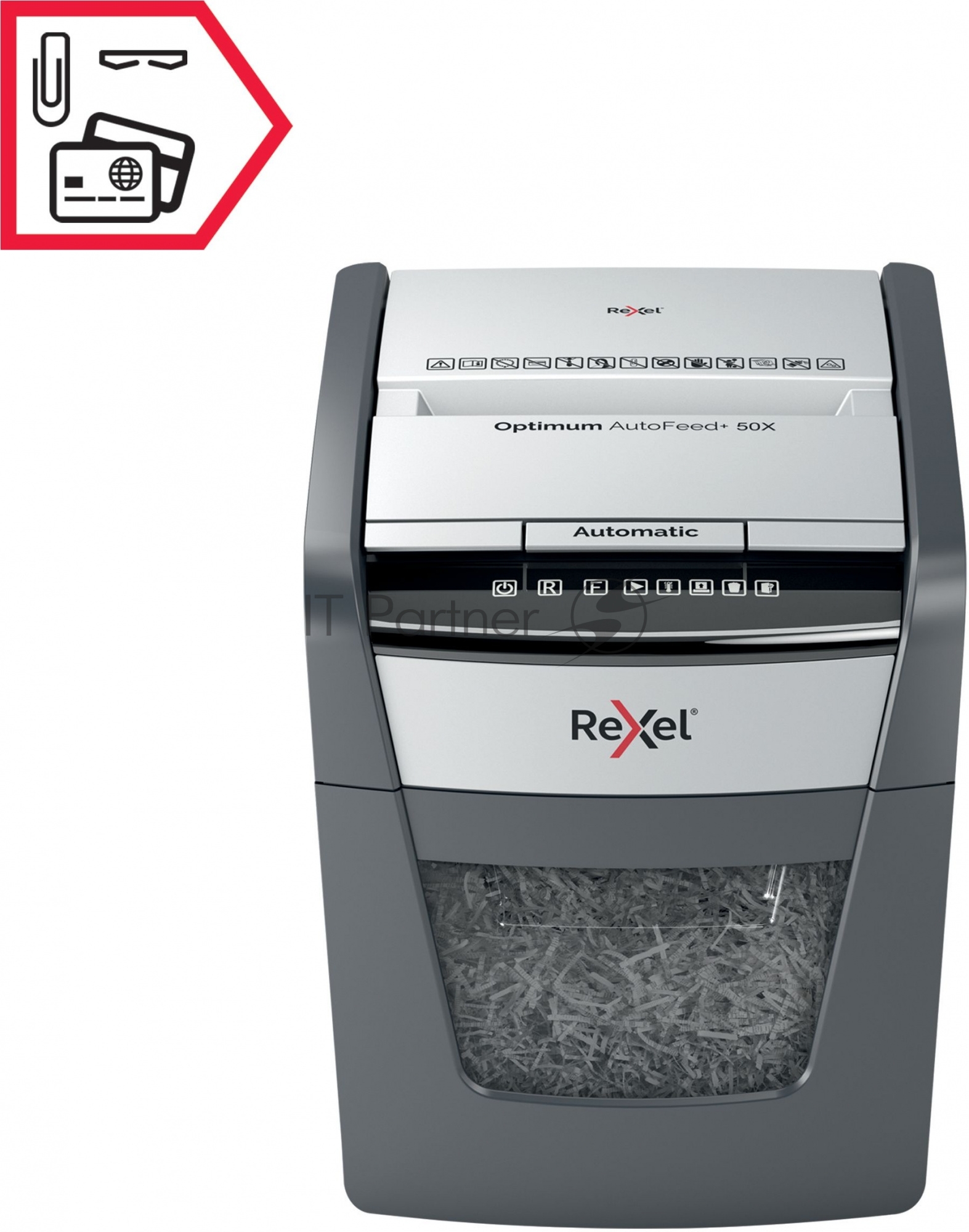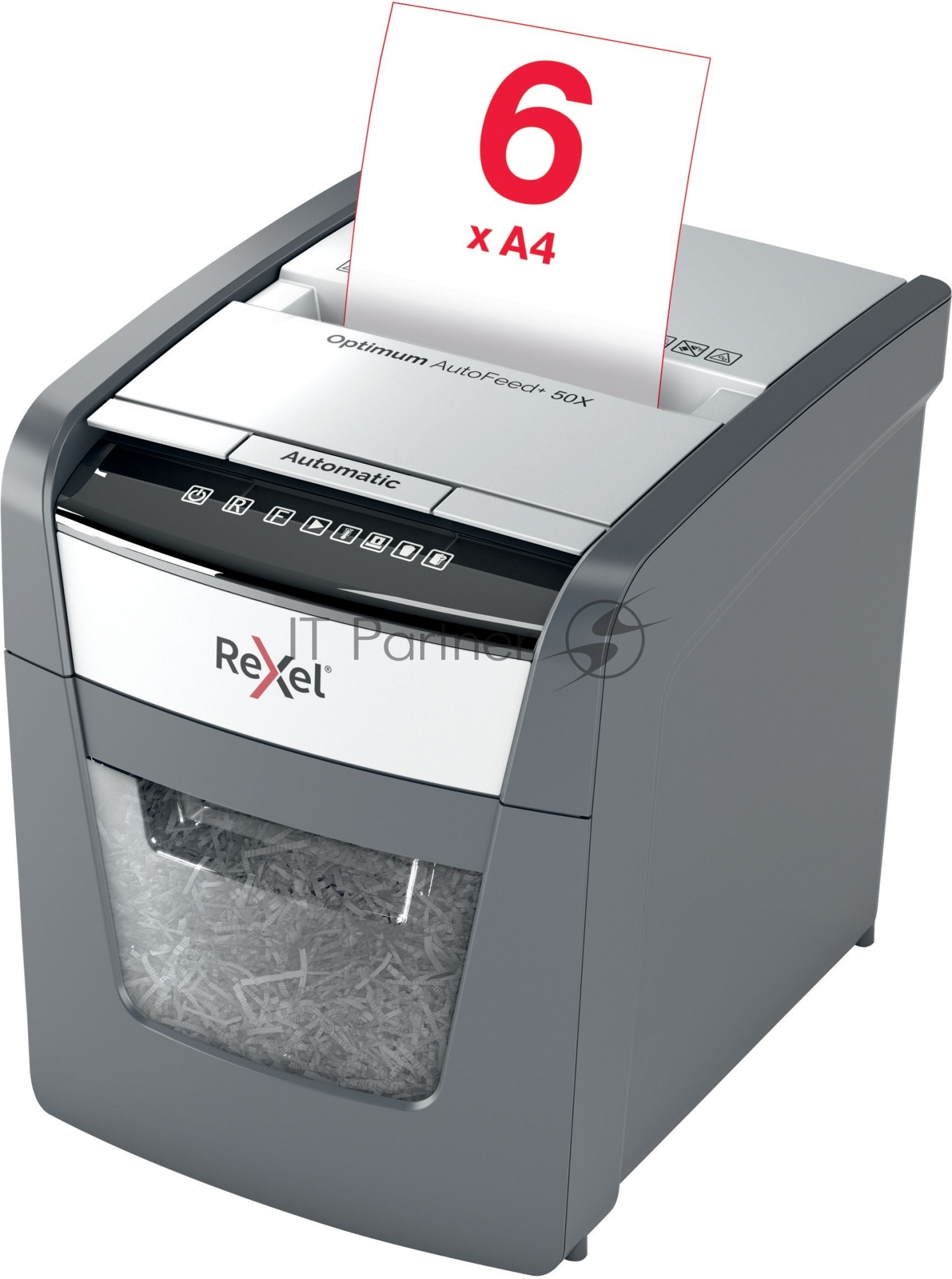 Шредер Rexel Optimum AutoFeed 50X черный с автоподачей (секр.P-4)/фрагменты/50лист./20лтр./скрепки/скобы/пл.карты