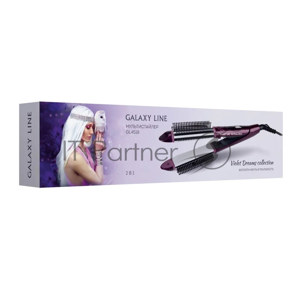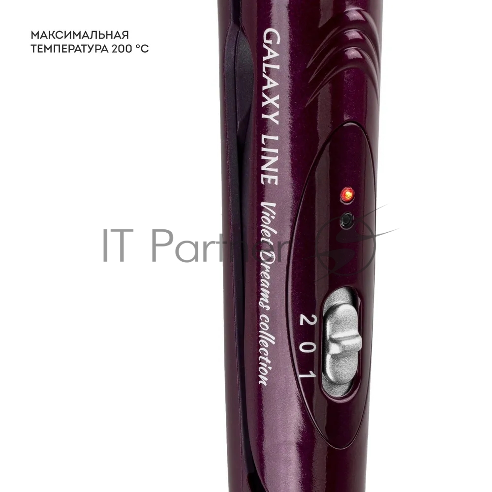 Стайлер Galaxy LINE GL4518 фиолетовый, обычные, режимов — 2 шт, диаметр — 28 мм, до 200 °C, керамико-кератиновое покрытие