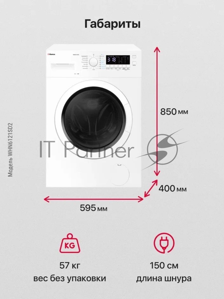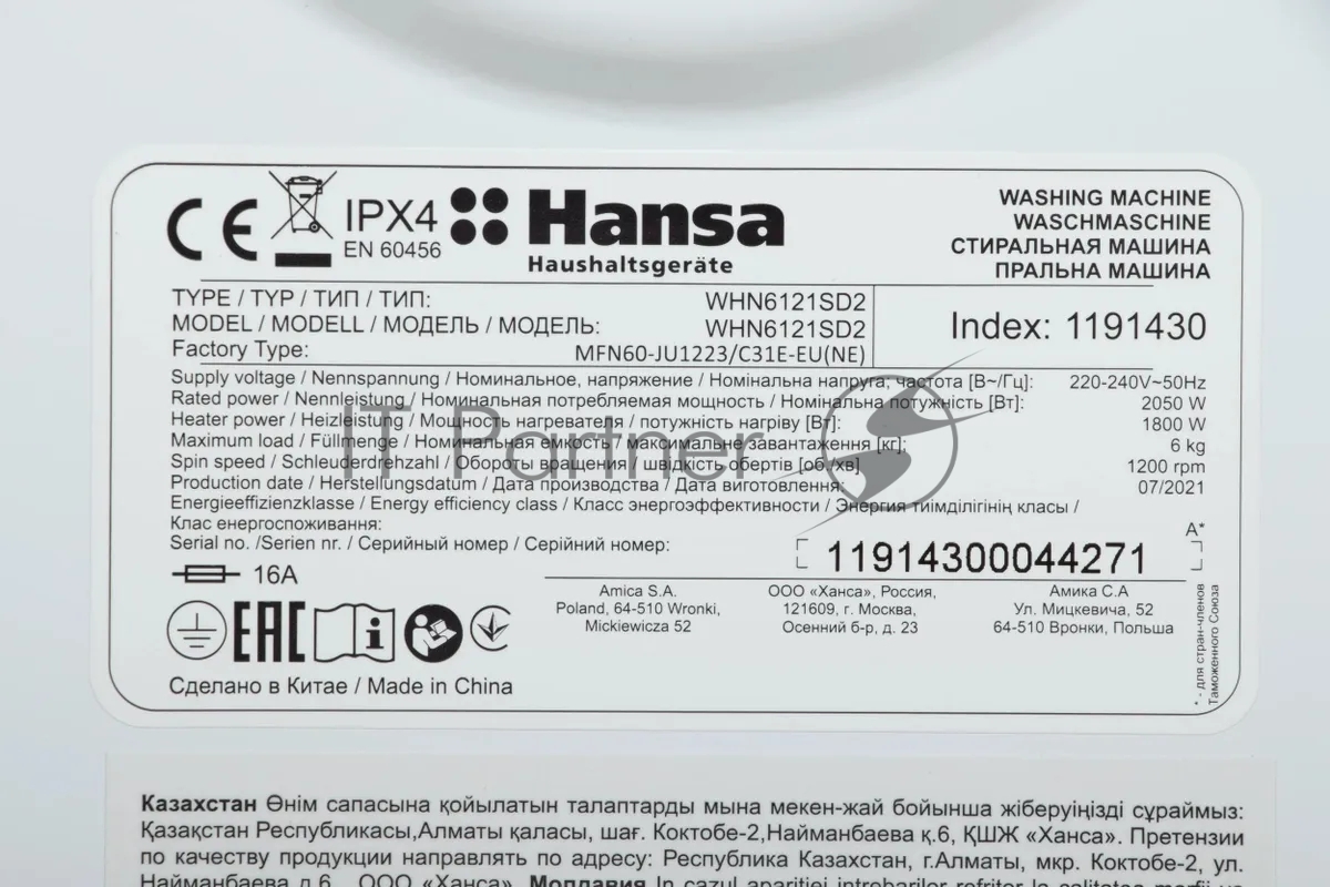 Стиральная машина Hansa WHN6121SD2 белый загр. фронтальная макс.: 56кг 1200об/мин класс: А++