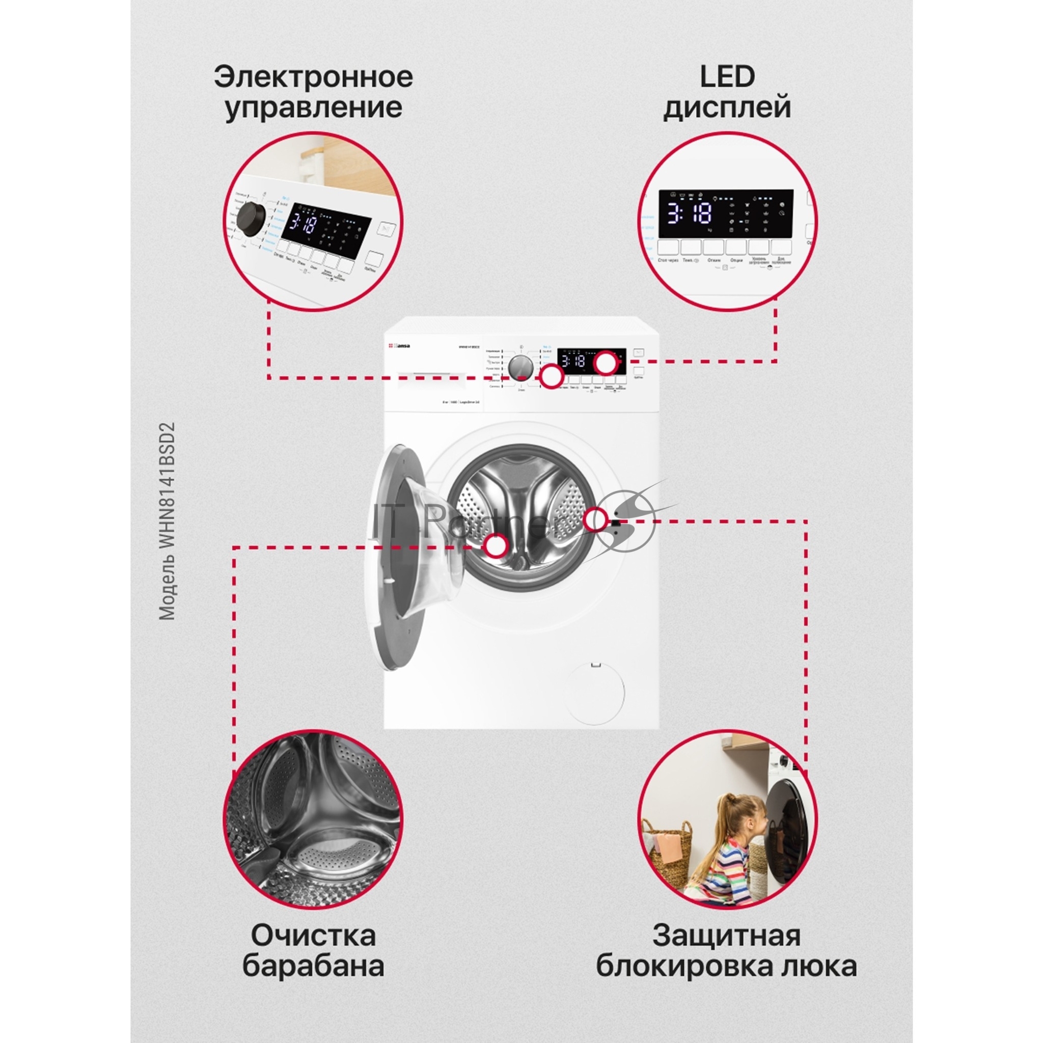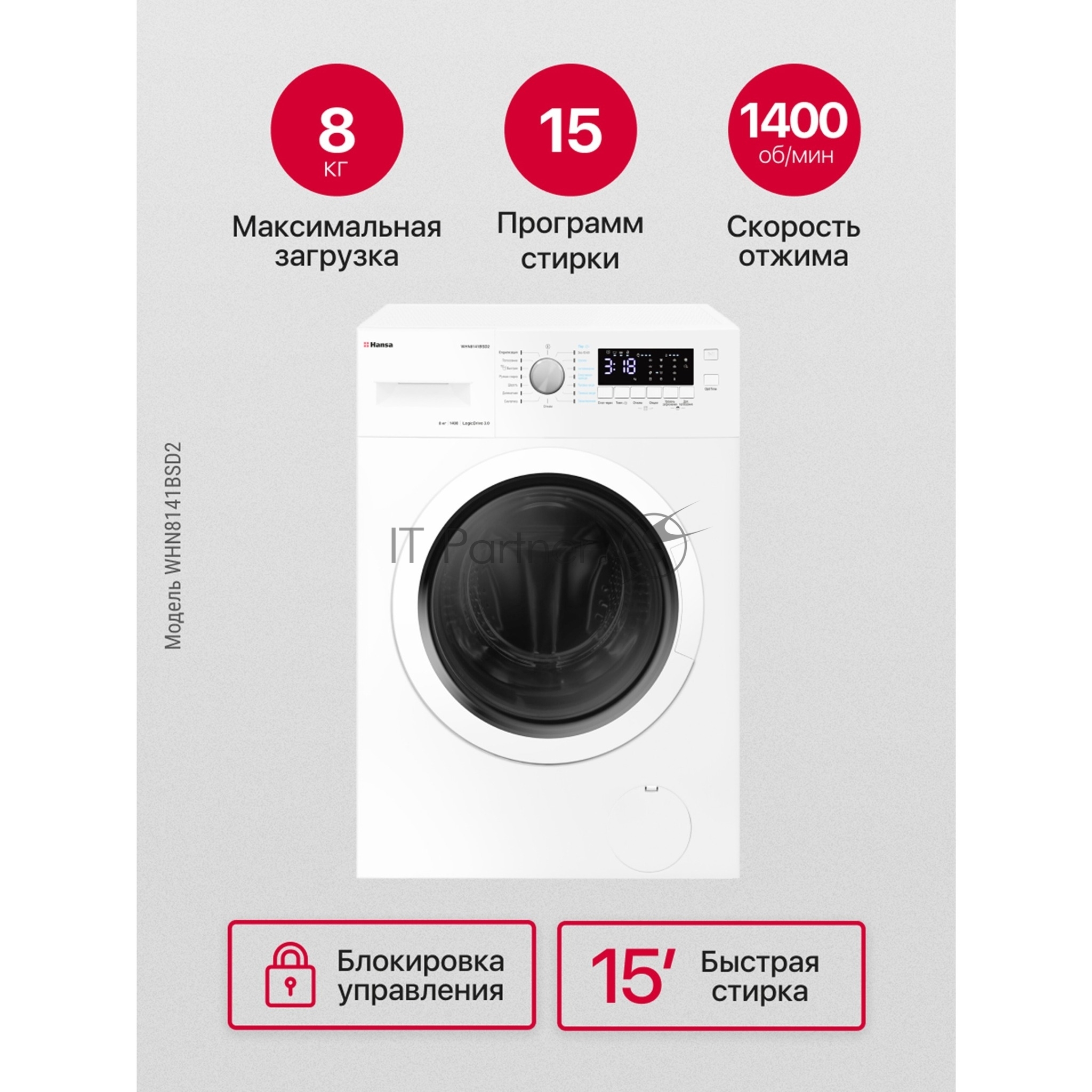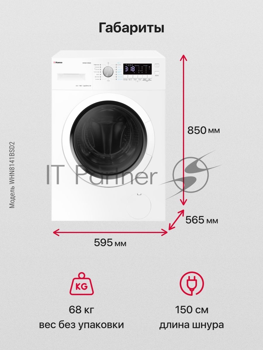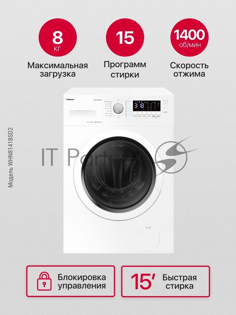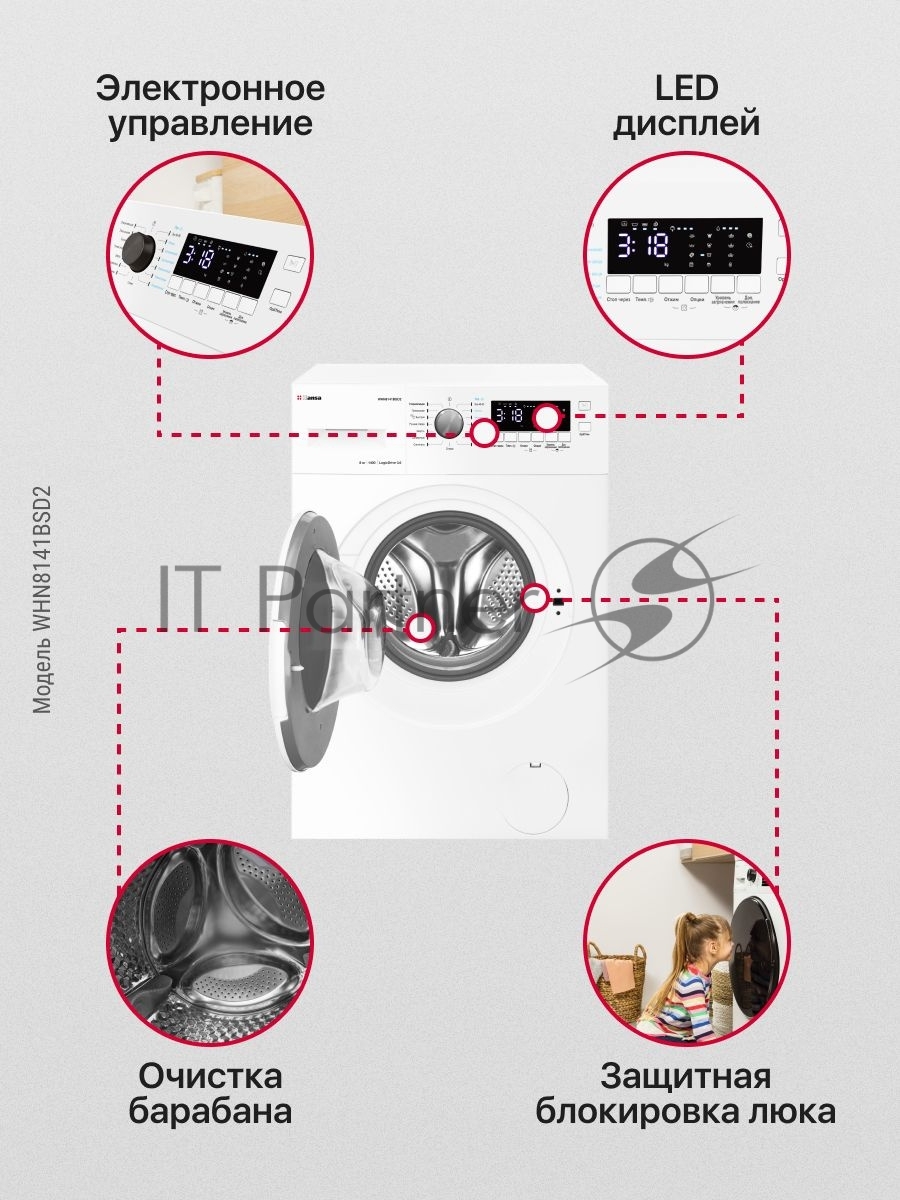 Стиральная машина Hansa WHN8141BSD2 белый загр. фронтальная макс.: 8 кг 1400 об/мин класс: А+++