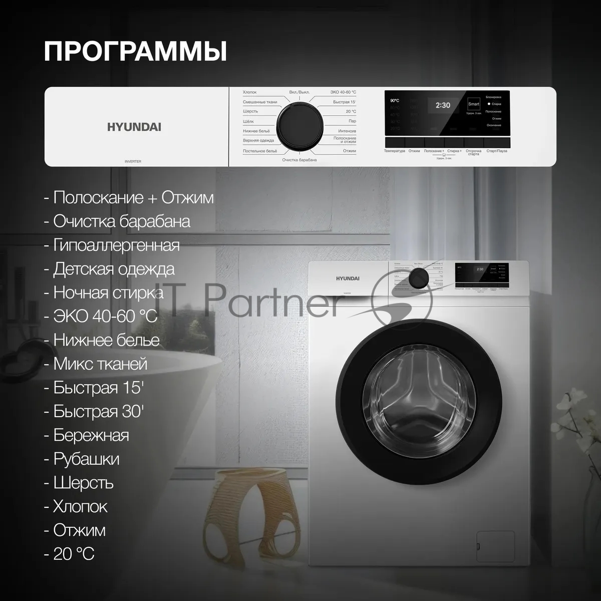 Стиральная машина Hyundai WME8203 белый, загр. фронтальная макс.: 8 кг 1200 об/мин класс: А+++
