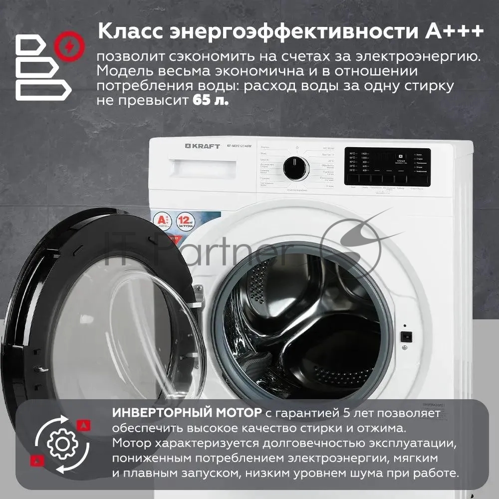Стиральная машина Kraft KF-MDS12146W белый, загрузка фронтальная 12 кг, 1400 об/мин., класс: А+++