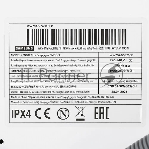 Стиральная машина Samsung WW70AG5S21CELP белый, загрузка фронтальная 7 кг, 1200 об/мин, класс: A