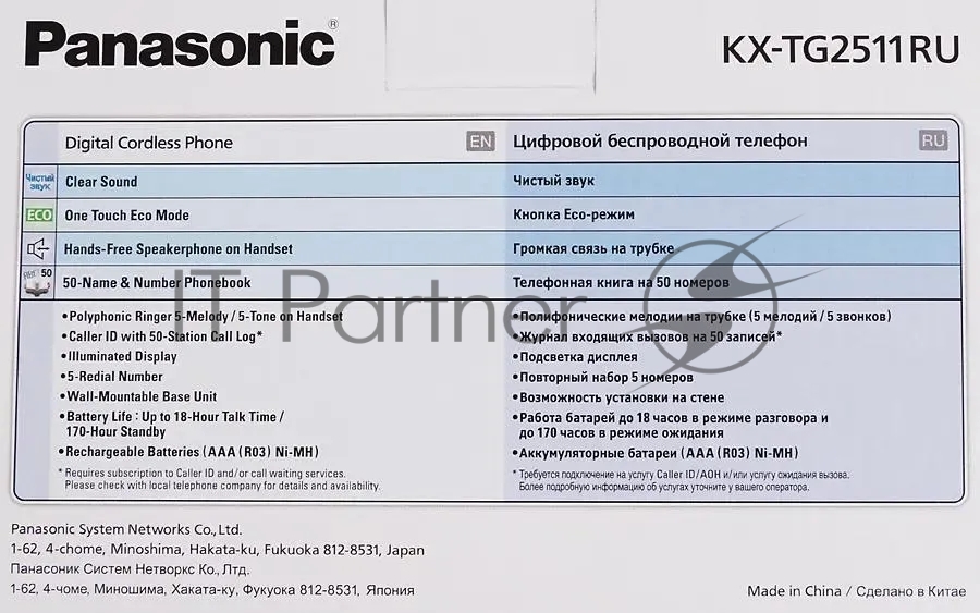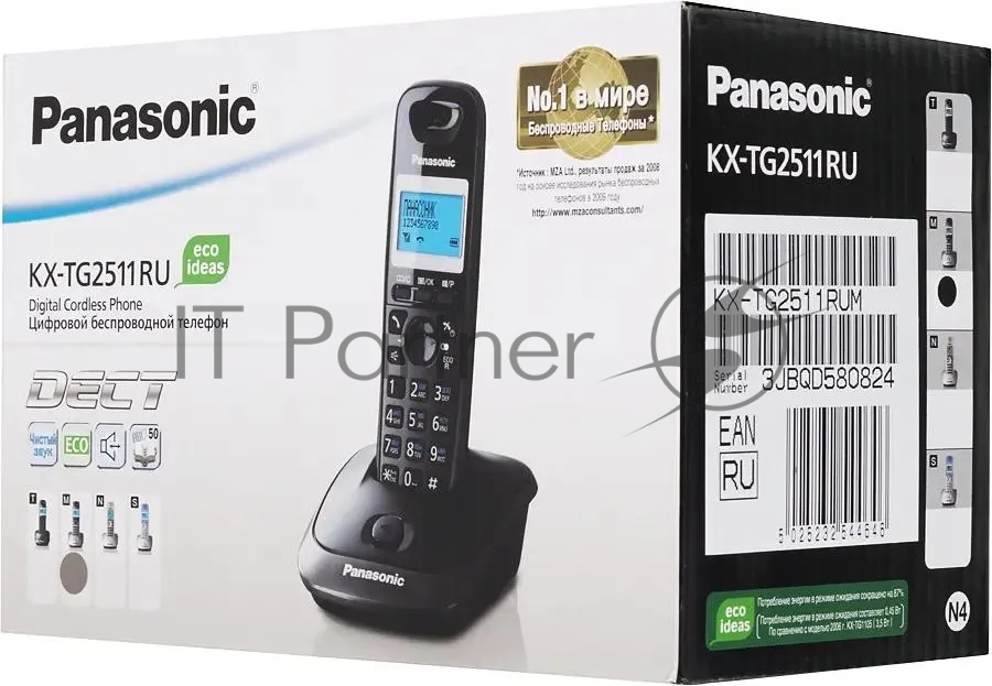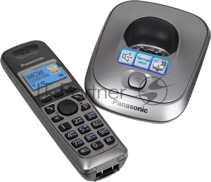 Телефон беспроводной (DECT) Panasonic KX-TG2511RUM (металик) {АОН, Caller ID,спикерфон на трубке,переход в Эко режим одним нажатием}