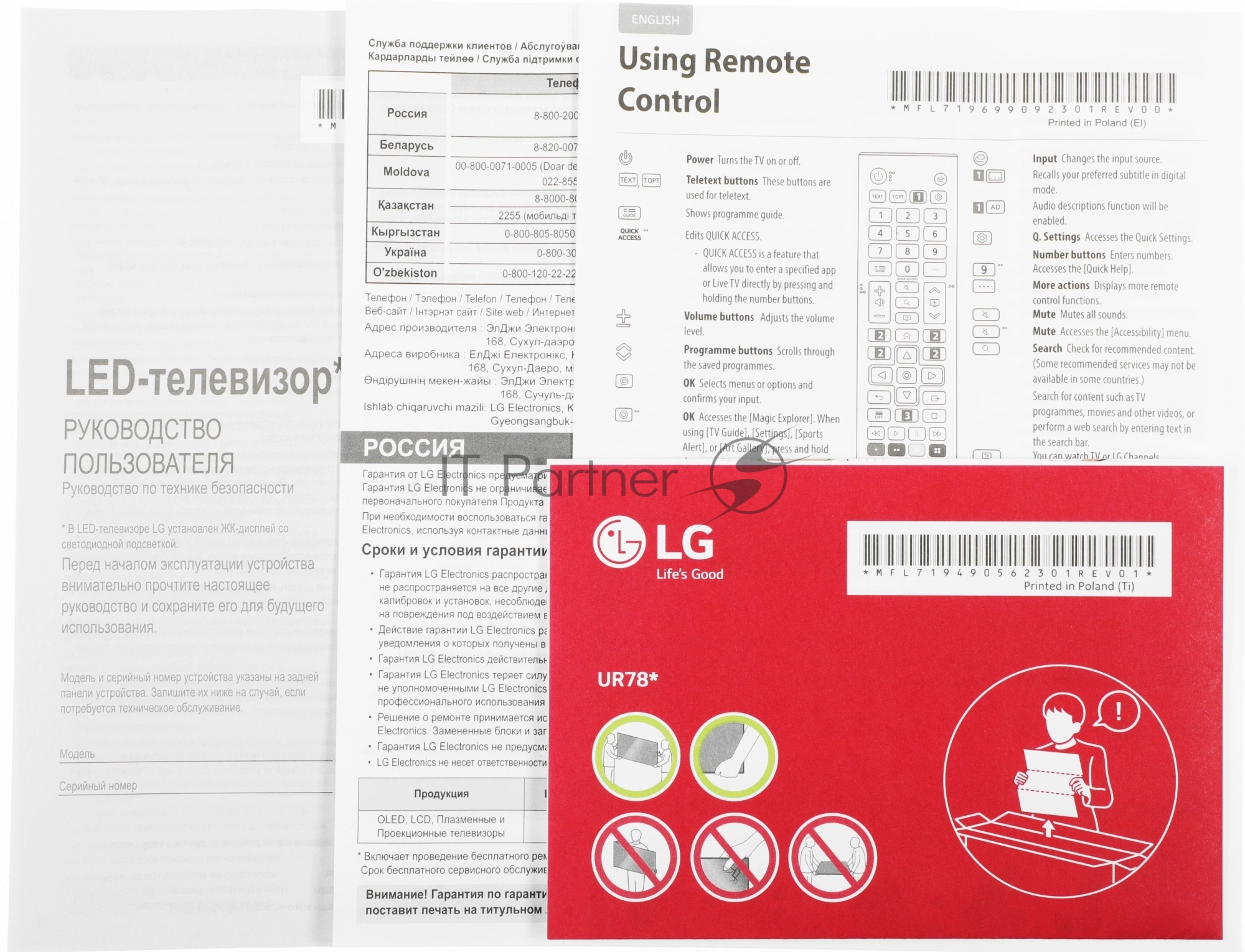 Телевизор LG 43UR78006LK черный 43″ LED 4K UHD 50Hz WebOS