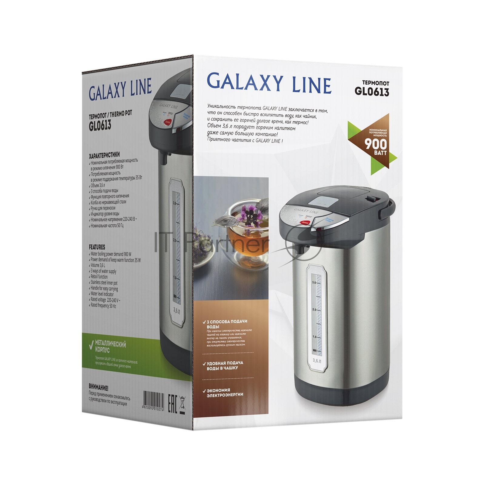 Термопот Galaxy Line GL 0613, серый, 900 Вт, объем 3,6 л