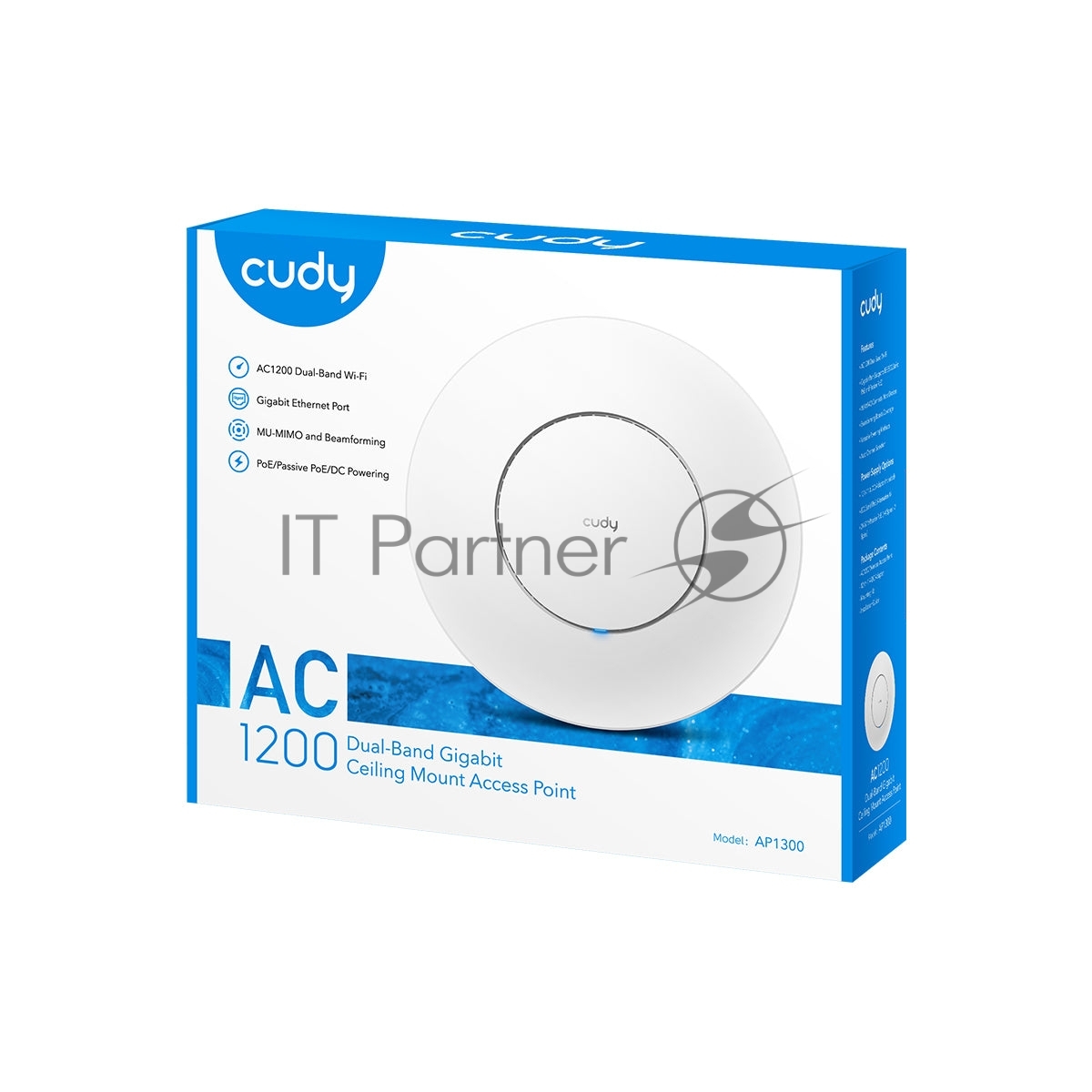 Точка доступа CUDY AC1200 Dual Band Gigabit Ceiling Mount Access Point, MT7621DAN+MT7613B+MT7603E, 867Mbps at 5GHz + 300Mbps at 2.4GHz, 1 x GbE RJ45 Port, Support 12V DC or 802.3af PoE or Passive PoE, Internal Antennas, 48V passive PoE adapter included, Cudy Mesh Support