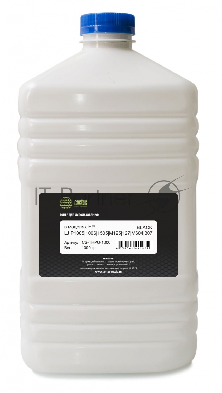 Тонер Cactus CS-THPU-1000 черный флакон 1000гр. для принтера HP LJ P1005/1006/1505/M125/127/M604/307/608