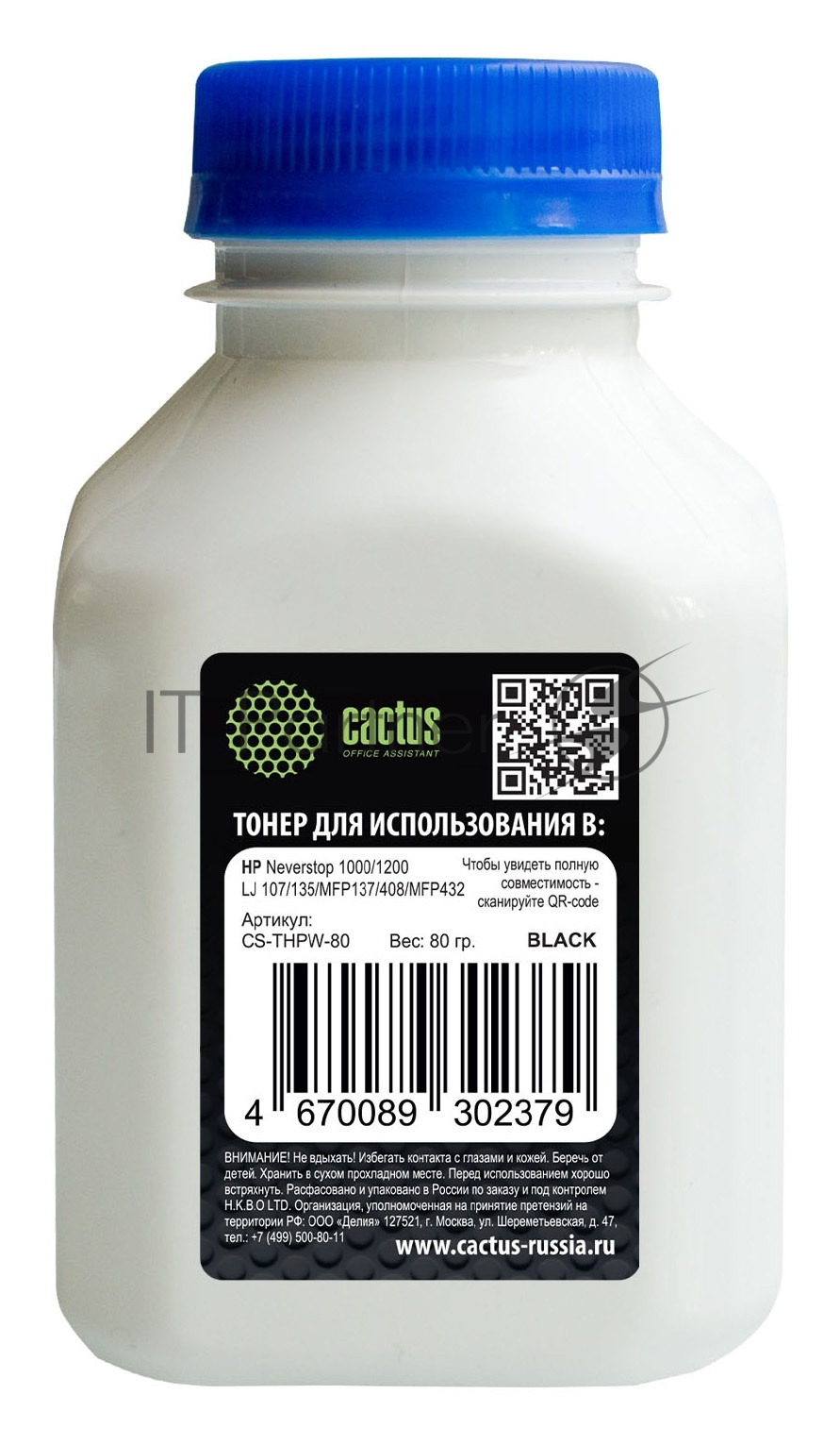 Тонер Cactus CS-THPW-80 черный флакон 80гр. для принтера HP Neverstop 1000/1200, HP LJ 107/135/MFP137/408/MFP432