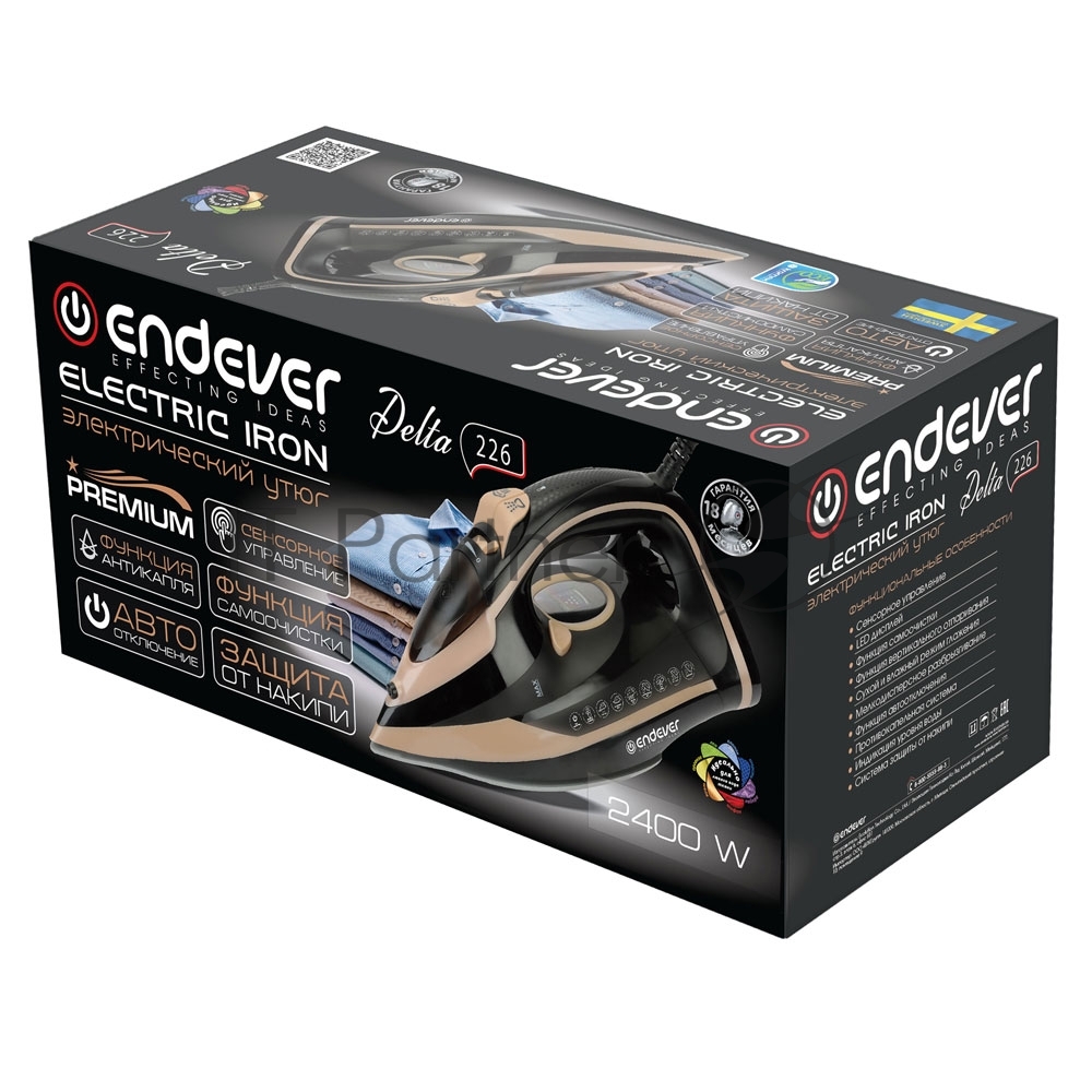 Утюг электрический Endever Delta-226, черный/бежевый, Мощность 2400 Вт, Подача пара до 45 г/мин, Паровой удар 160 г/мин, 8 шт/уп