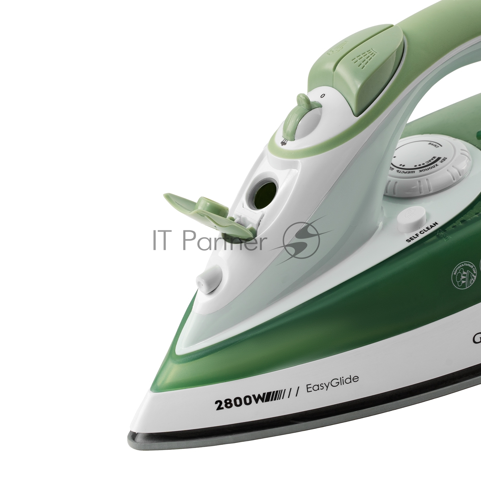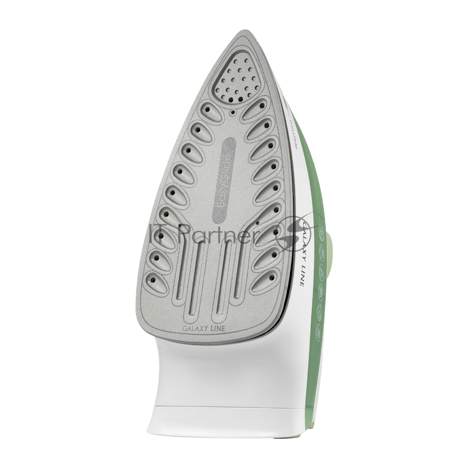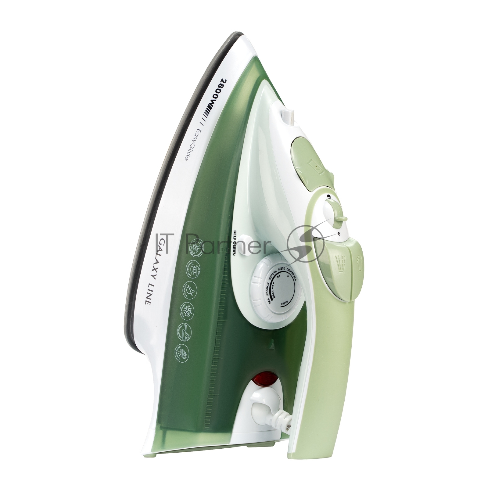Утюг Galaxy Line GL 6134, зеленый с белым, паровой, 2800 Вт, керамическое покрытие EasyGlide, функции: самоочистка, антикапля, антинакипь, указатель максимального уровня воды, индикатор нагрева, вертикальное отпаривание, паровой удар, регулировка подачи пара, защита от перегрева, резервуар для воды 280 мл, подача пара до 60 г/мин, паровой удар до 200 г/мин