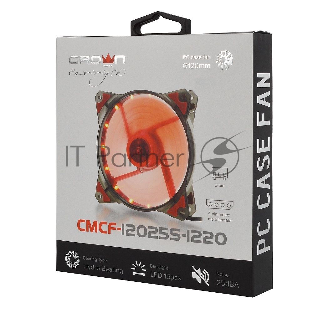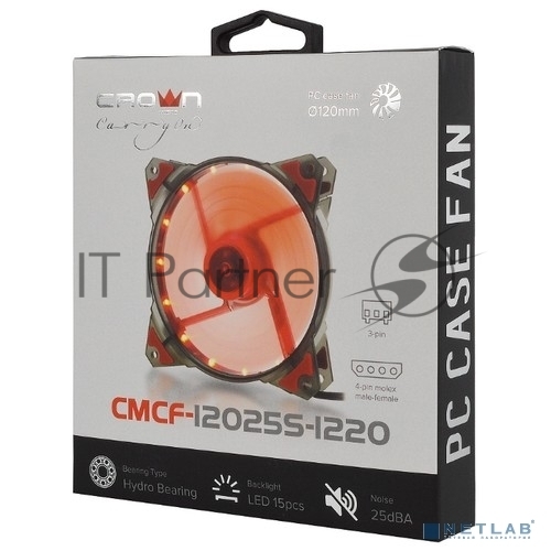 Вентилятор для корпуса Crown CMCF-12025S-1220 черный/красный, 120 мм, 1650 об/мин, 28 дБ, 3 pin
