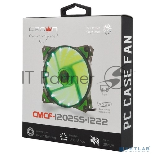 Вентилятор для корпуса Crown CMCF-12025S-1222 черный/зеленый, 120 мм, 1650 об/мин, 28 дБ, 3 pin