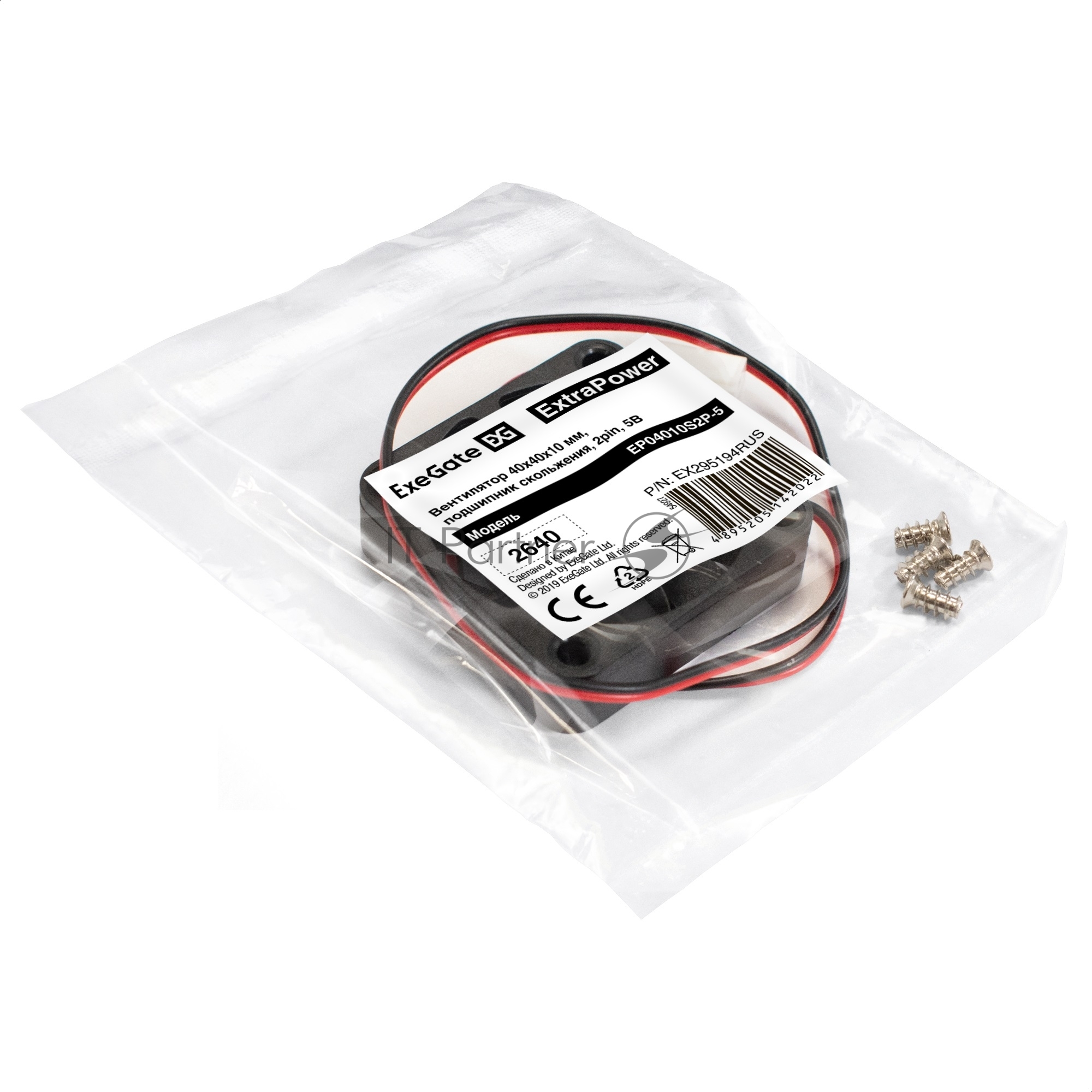 Вентилятор для корпуса ExeGate ExtraPower EP04010S2P-5 черный, 40 мм, 7500 об/мин, 35 дБ, 2 pin
