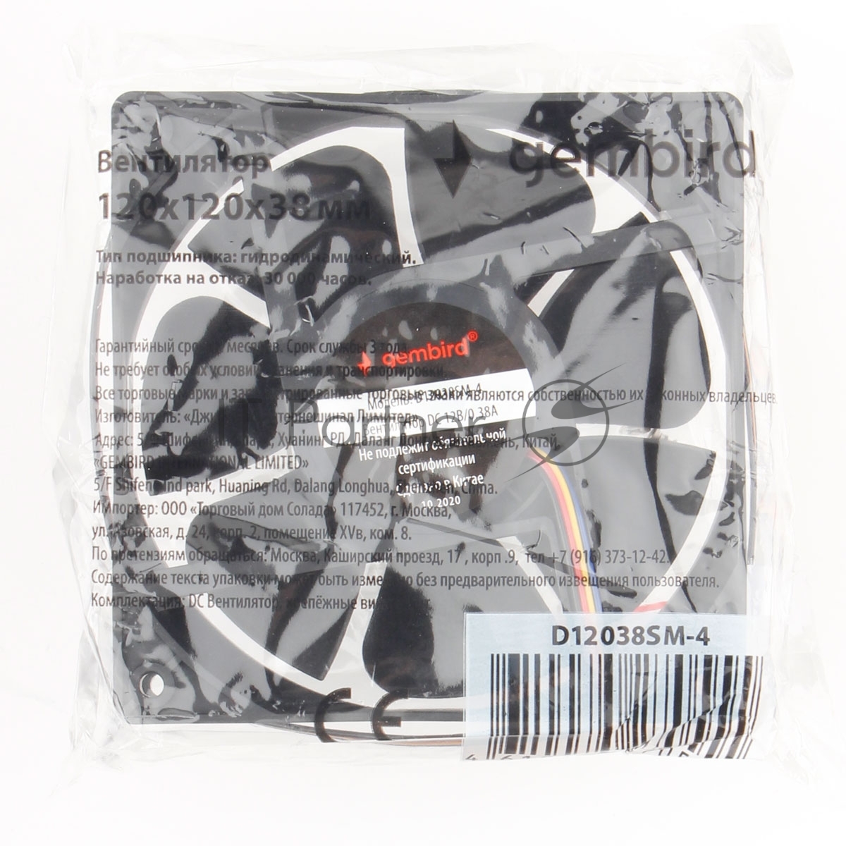 Вентилятор Gembird 18659 черный 120мм 2500rpm 38.65db 4-pin