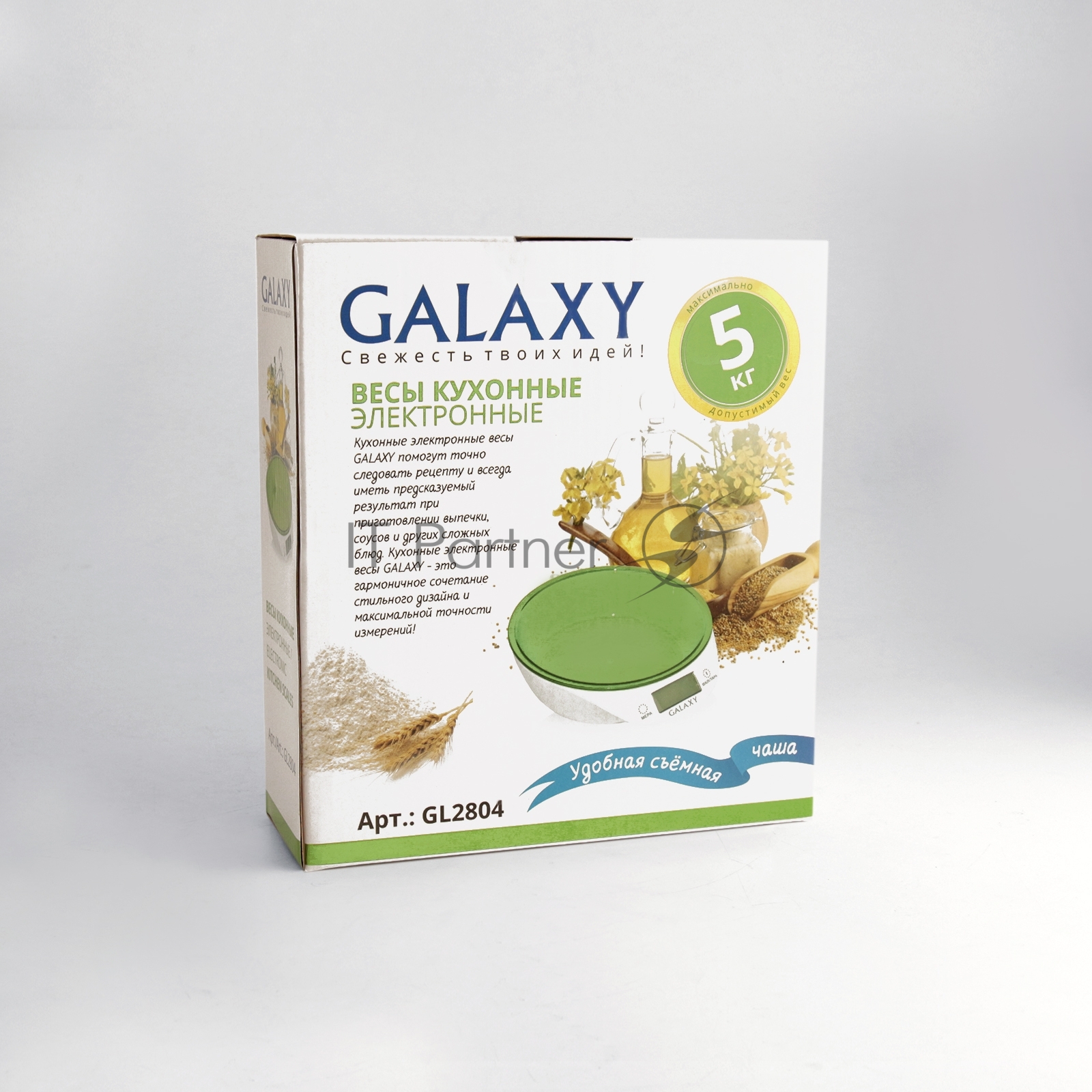 Весы кухонные электронные Galaxy Line GL 2804, зеленый, пластик, максимально допустимый вес 5 кг, ЖК-дисплей, цена деления 1 г, фукция обнуления массы тары, автоматическое отключение, индикатор перегрузки, индикация низкого заряда элемента питания, элемент питания типа «CR2032» (1шт) в комплекте