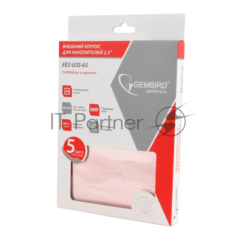 Внешний корпус 2.5″» Gembird EE2-U3S-65, розовое золото, USB 3.0, SATA, алюминий