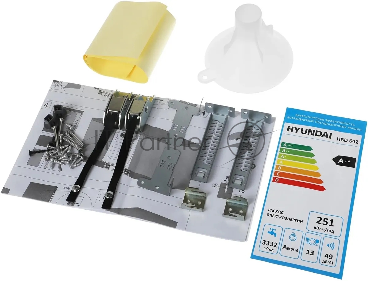 Встраиваемая посудомоечная машина Hyundai HBD 642 2100 Вт, полноразмерная, нержавеющая сталь, инвертер, загрузка 13 комплектов