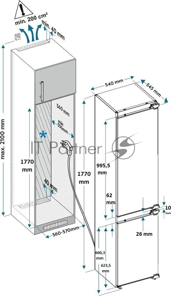 Встраиваемый холодильник Hyundai HBR 1771 2-хкамерн. белый