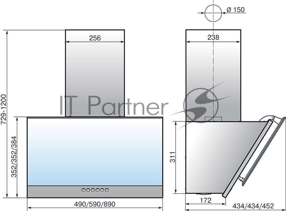 Вытяжка каминная Elikor Рубин S4 60П-700-Э4Д антрацит/черное стекло управление: кнопочное (1 мотор)