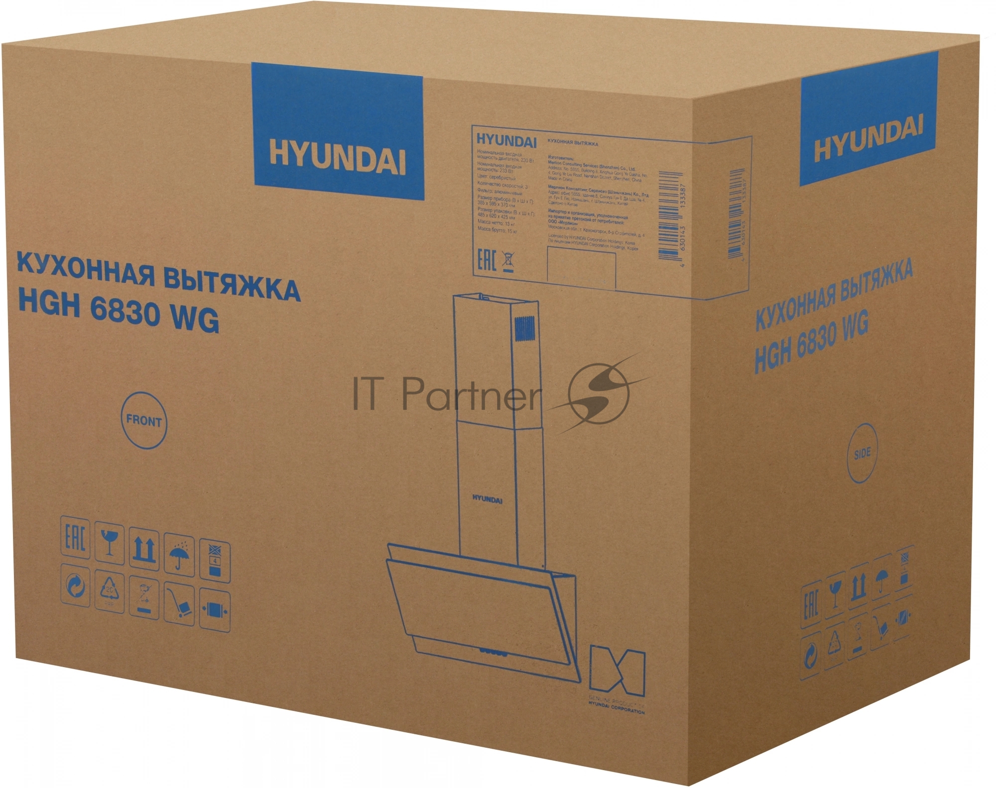 Вытяжка каминная Hyundai HGH 6830 WG белый, управление кнопочное (1 мотор)