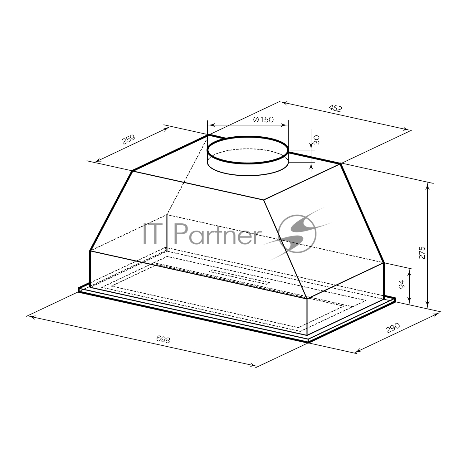 Вытяжка кухонная встраиваемая Lex Hyper 900 GS BL черный, управление сенсорное (1 мотор)