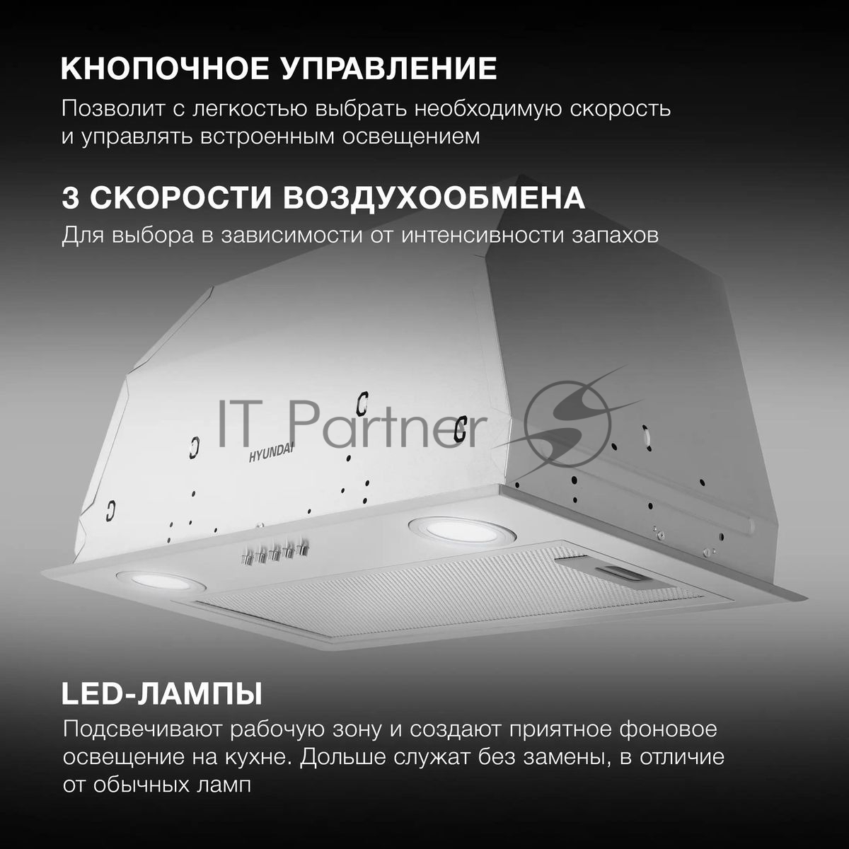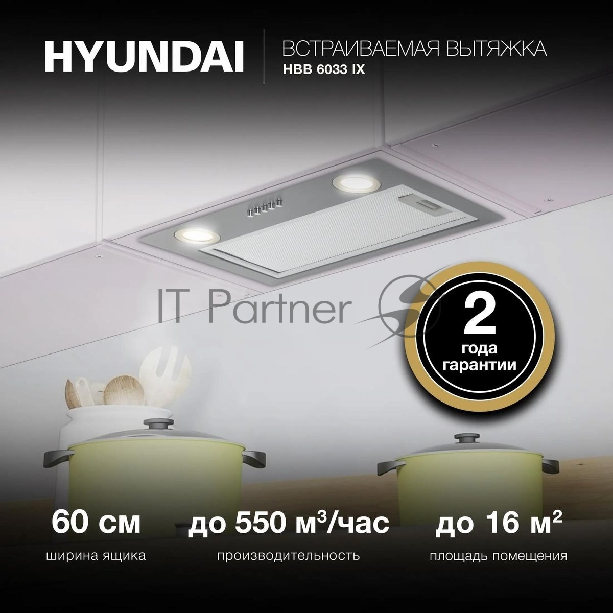Вытяжка встраиваемая Hyundai HBB 6033 IX нержавеющая сталь управление: кнопочное (1 мотор)